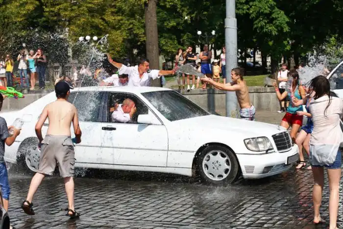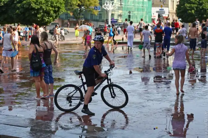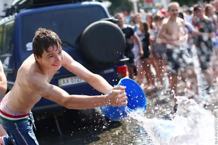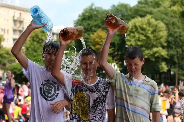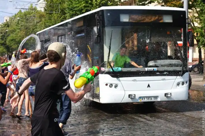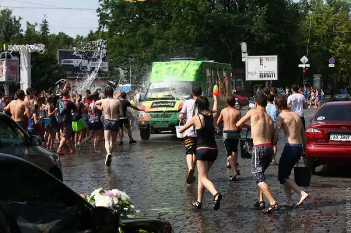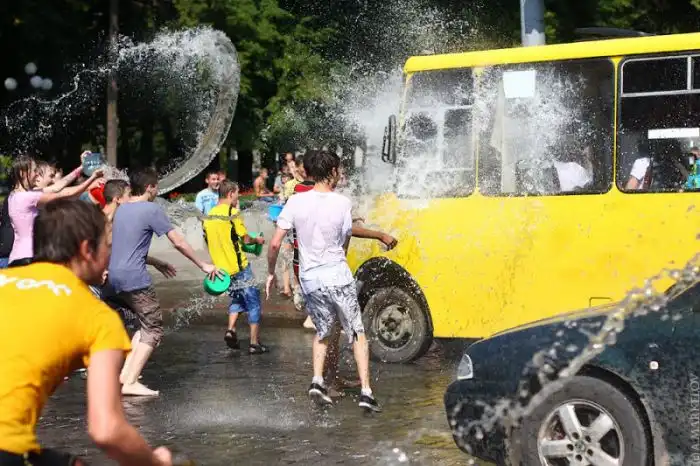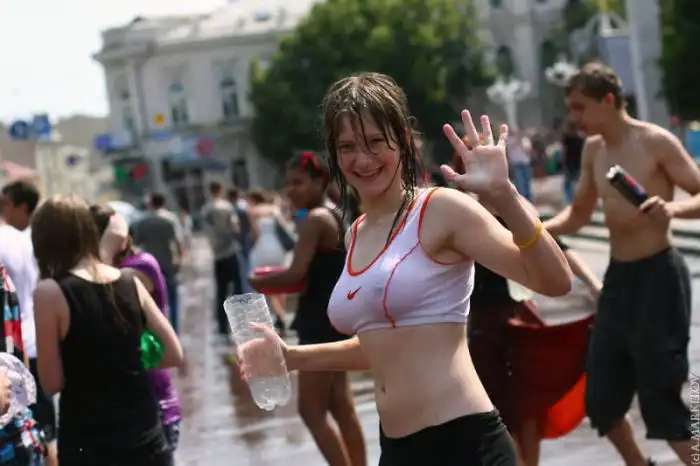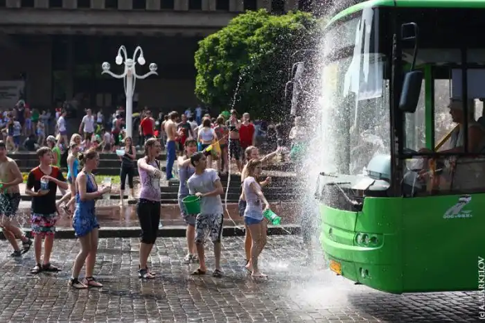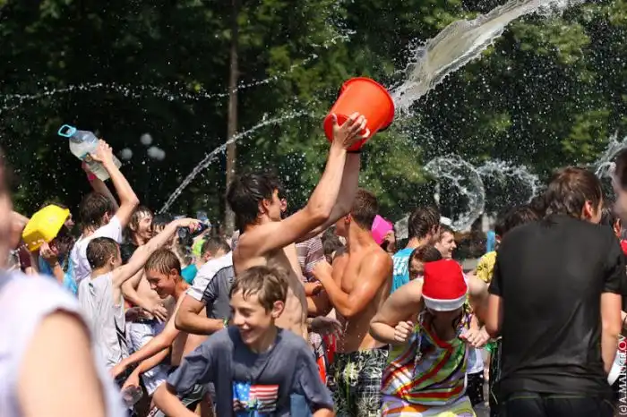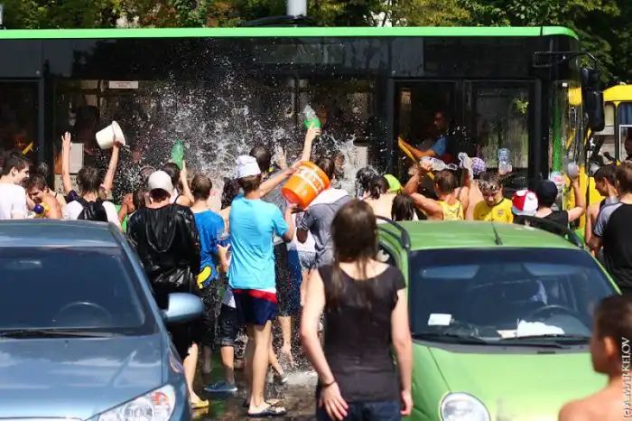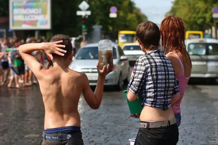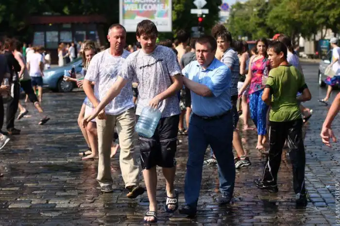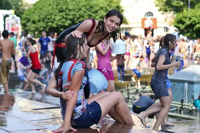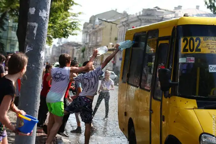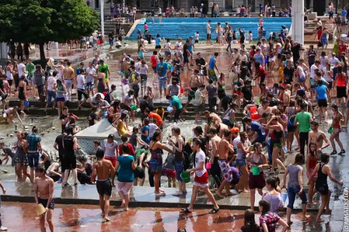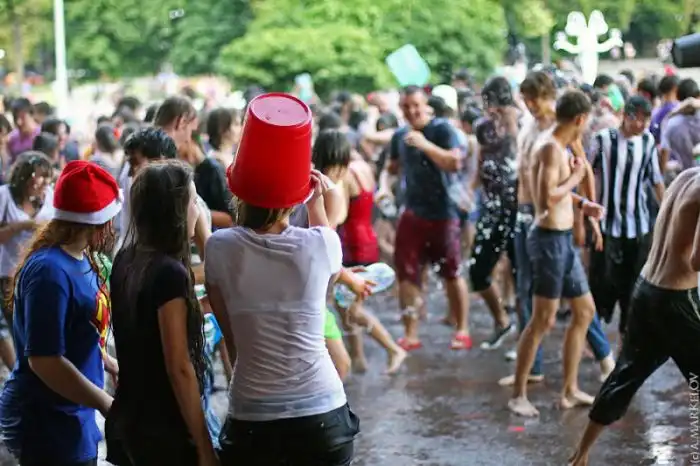Сотни людей вышли на улицу с бутылками, ведрами, водными пистолетами и превратили центр города в зону «боевых действий» :)
