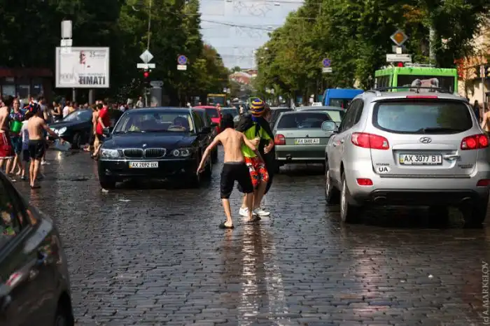 На выходных в Харькове прошел флешмоб с «обливанием».