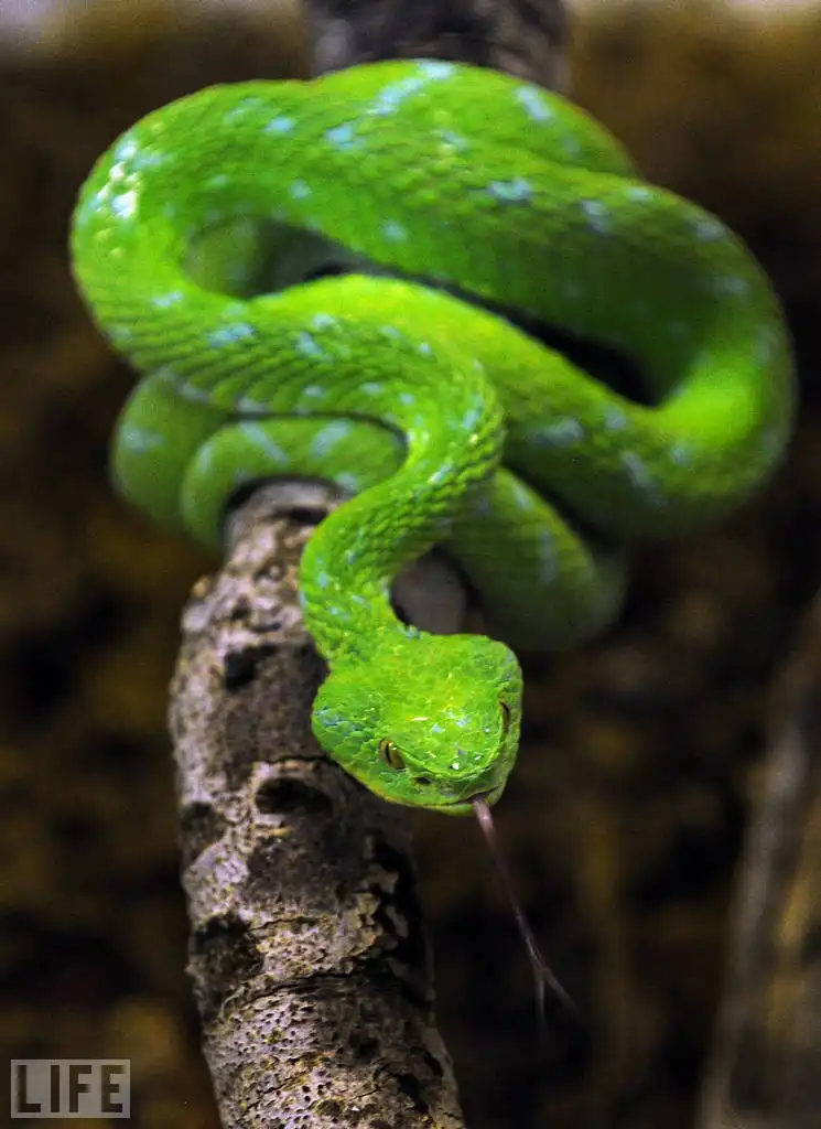 Смертельно ядовитая зеленая ямкоголовая змея.