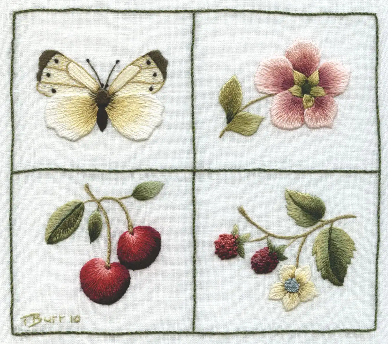 Как и большинство рукодельниц, поначалу Триш предпочитала вышивать крестиком, однако постепенно тяга к натурализму привела ее к необходимости изучения способа «рисования иглой», другими словами, вышивка гладью.