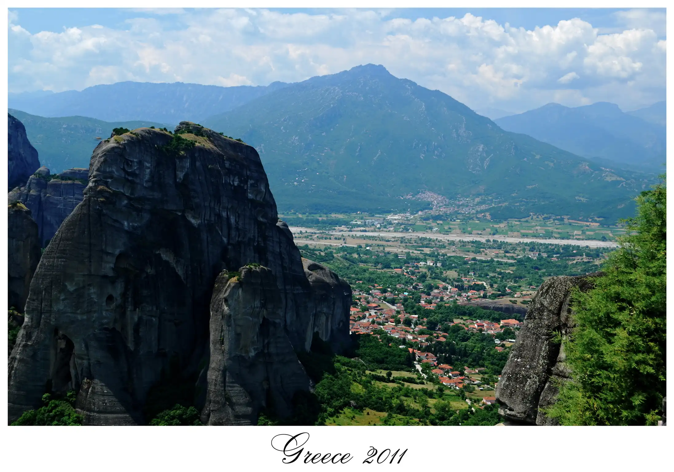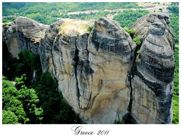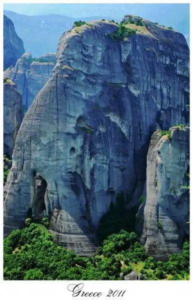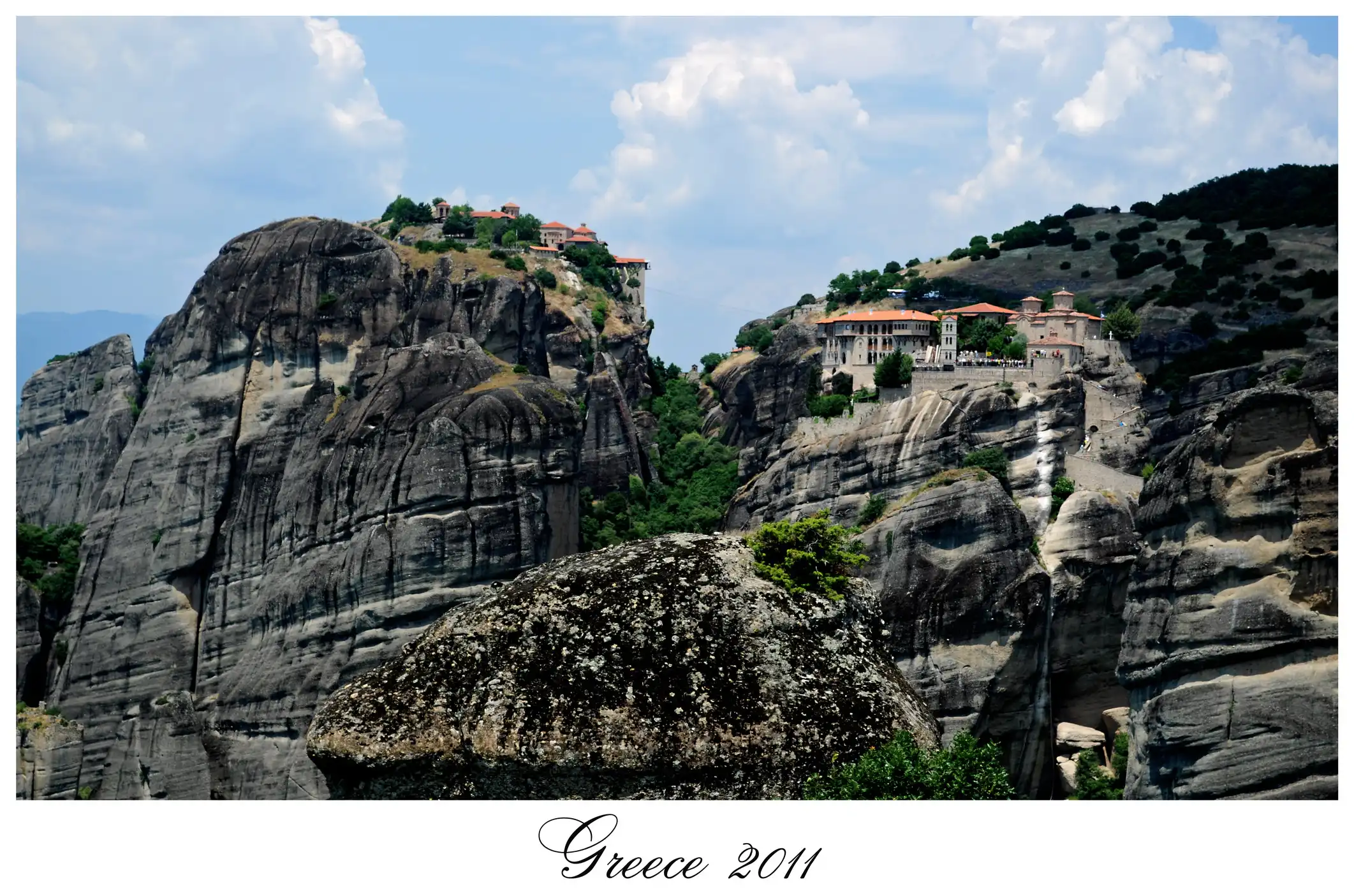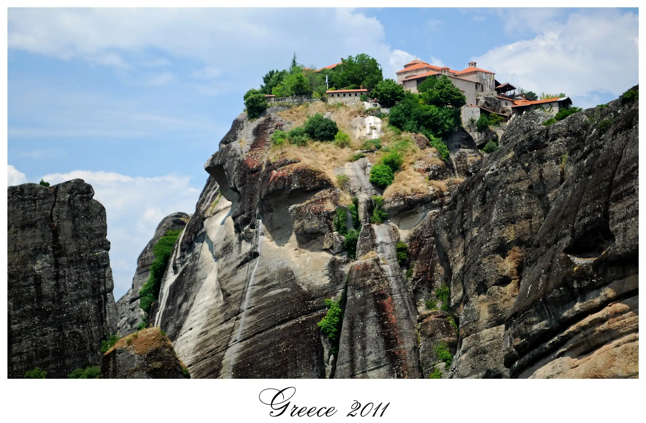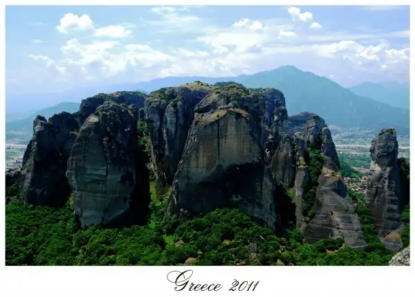 Ездили поглазеть на Метеоры. Метеоры (греч. Μετέωρα) — один из крупнейших монастырских комплексов в Греции, прославленный, прежде всего, своим уникальным расположением на вершинах скал. Монашеский центр был образован около X века и с тех пор существует непрерывно. В 1988 году монастыри были включены в список объектов всемирного наследия. По административно-церковному делению входит в митрополию Стаги и Метеор (греч. Σταγών και Μετεώρων) Элладской православной церкви.Шесть действующих православных монастырей, расположены на вершинах грандиозных скал, находящихся на ровной поверхности Фессалийской равнины. Скалы достигают в высоту 600 метров над уровнем моря и являются редким геологическим явлением. Они образовались более 60 миллионов лет назад и являлись каменистым дном доисторического моря, находившегося на месте равнины.[1] В результате воздействия воды, ветра и перепадов температур получились массивные, как бы зависшие в воздухе каменные столбы, получившие название Метеоры (от греч. μετέωρα — «парящие в воздухе»).