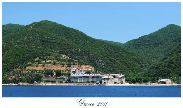 Теплоходы, отправляющиеся из города Урануполис, плывут у юго-западного побережья полуострова, на расстоянии, достаточном, чтобы рассмотреть монастыри, и в том числе знаменитый русский монастырь Св. Пантелеимона.