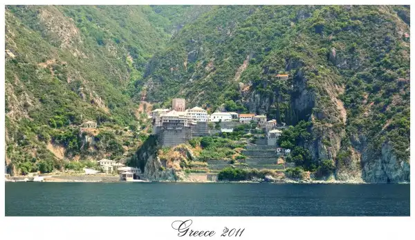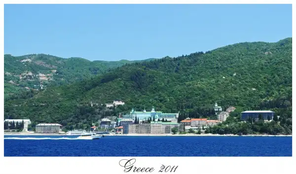 Ездили в круиз посмотреть на святой Афон.Святой Афон - единственная в мире православная монашеская республика с тысячелетней историей, с исключительно мужским населением. Она находится на территории третьего «пальца» Халкидик, на 80 с лишним километров вдающегося в море.