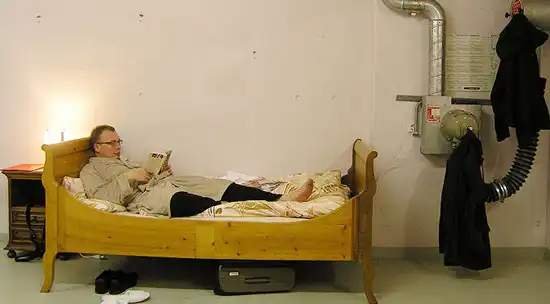 Когда-то здесь проводили учения военные, а сейчас надобности в бомбоубежище (принадлежащем государству) вроде как нет. Между тем содержать его необходимо (по закону), что ложится на местный бюджет дополнительной ношей. Потому местные художники — братья Патрик и Франк Риклины — по заказу муниципальных властей провели «операцию» по превращению бункера в гостиницу.