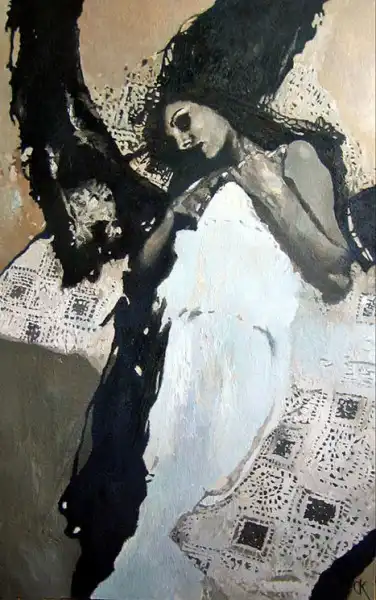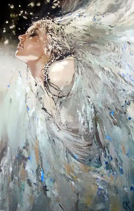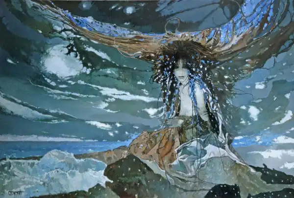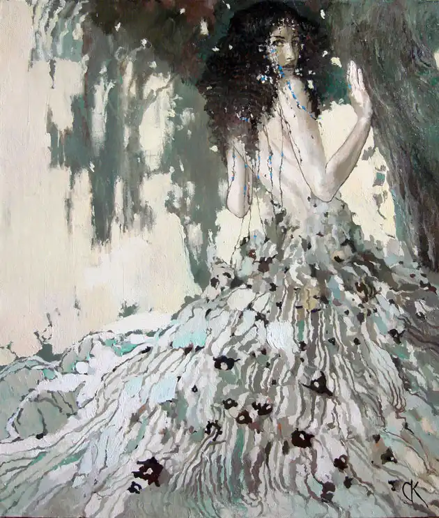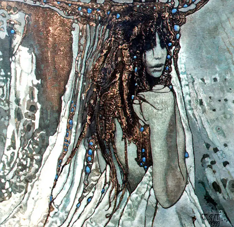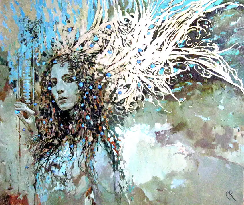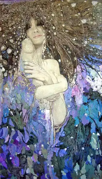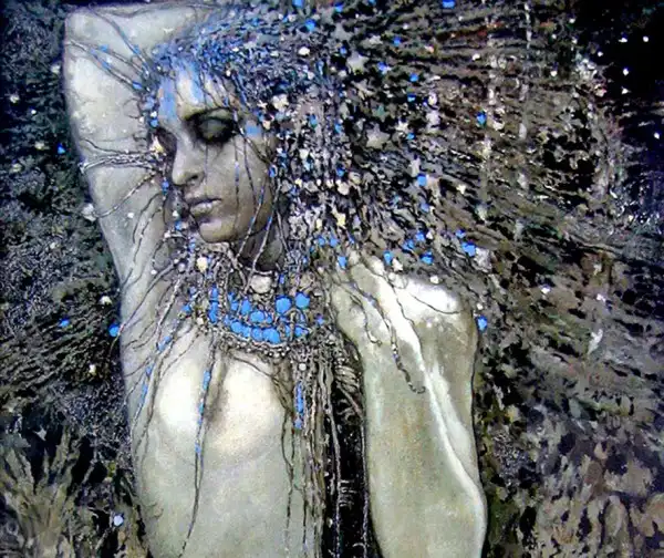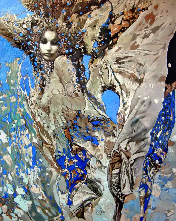 Посмотрите на эту картину. Ее героиня одновременно и есть – и ее нет. В любую секунду она может раствориться в породивших ее потоках воздуха. Неустойчивые течения ветра передали ей свою неопределенность, изменчивость. Он летит над землей, повинуясь притяжению Луны – и Невеста Ветра движется вместе с ним. Ей не нужна даже самая минимальная опора в виде облака. Зачем? Достаточно устроиться на гибких, ненадежных струях воздуха. И тогда ее неопределенные, бесформенные одежды раскинутся вокруг хрупкого тела – как маленькая, причудливая тучка. Женщину-духа окружит колдовской, неверный свет – и для нее он будет много ближе, естественнее нормальных красок неба. Волосы ее раскинутся по сторонам и поднимутся как стенки чаши – или как крылья? Вот только эта чаша никогда не создастся полностью и ничего не сможет в себе удержать. А крылья – зачем они нужны той, которая парит и без них? Да, они помогут удержать выбранное направление. Но целеустремленность – это характерно для людей, а не для магических существ. Они по сути своей призрачны, неопределенны, непонятны…