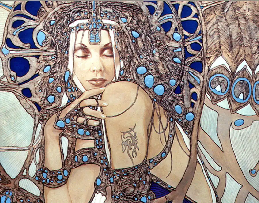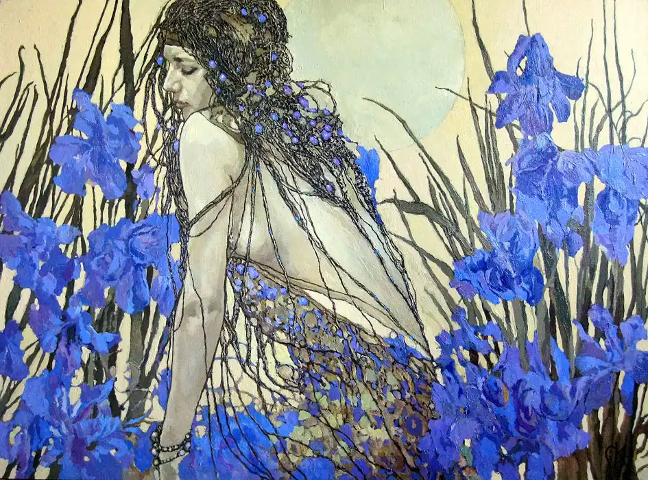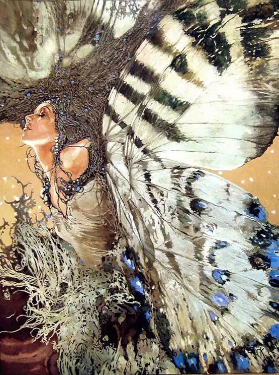 Душа, бабочкой отделяющаяся от тела, уносящаяся в мир снов и трав… Молодая, прекрасная девушка закрыла глаза, взяла в руки волшебный цветок – который позднее своим ароматом поможет ей-бабочке вернуться в человеческое обличье. И – вспорхнула. Только волосы на миг приподнялись, приняли формы тоненьких, разноцветных крыльев…