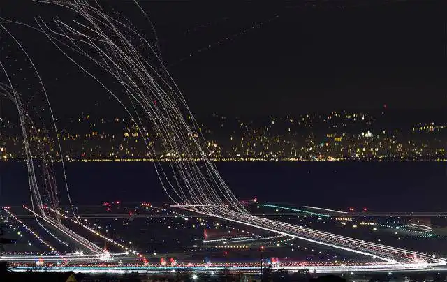 Длинная выдержка – это не только технический прием, позволяющий правильно проэкспонировать кадр, но и способ получения завораживающих взгляд кадров. При длинной выдержке мы на одном снимке можем запечатлеть динамику происходящих вокруг нас изменений, невидимых глазом. А аэропорты, где движение происходит постоянно, – идеальное место для получения подобных фотографий!