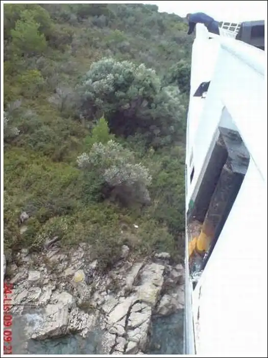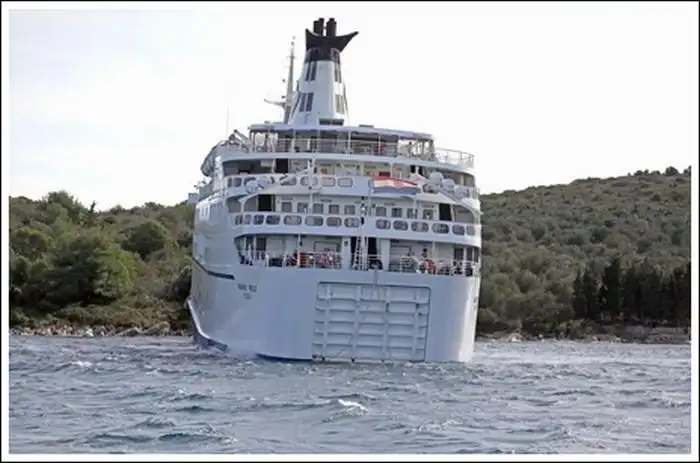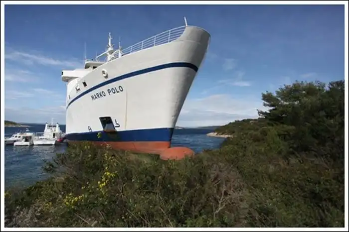 Корабль длинной 128 метров и весом 2000 тонн сел на мель в Италии. Причиной тому был капитан корабля, который изрядно выпил и скорее всего его начало укачивать, поэтому он решил сойти на берег. Вроде аккуратно припарковался. Никто не пострадал.