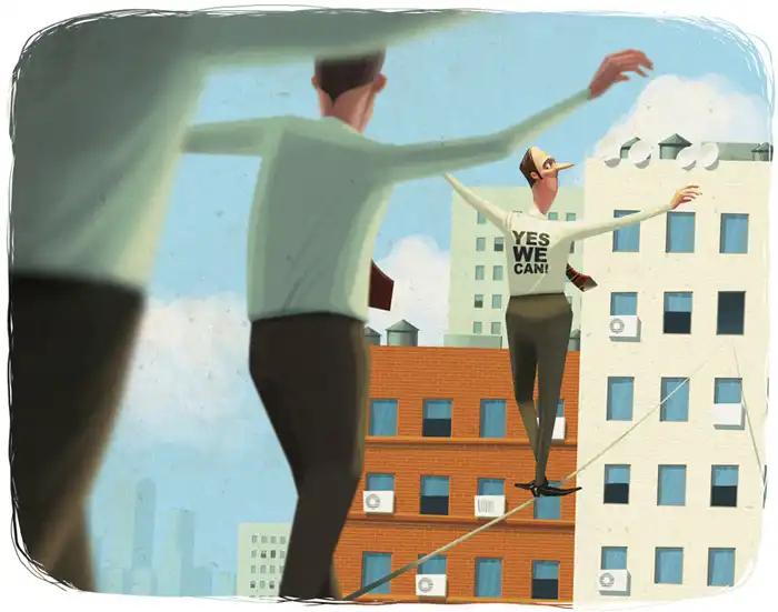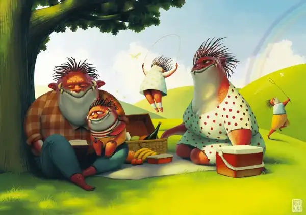 Он рисует "статичные мультфильмы", используя выразительность мультипликационных кадров, придавая всем своим работам живые и уникальные характеры. Денис родился в Минске в семье художников, в 1991 году все они переехали в Израиль, откуда он и работает для России, Европы, США, множества других стран и для собственно Израиля.