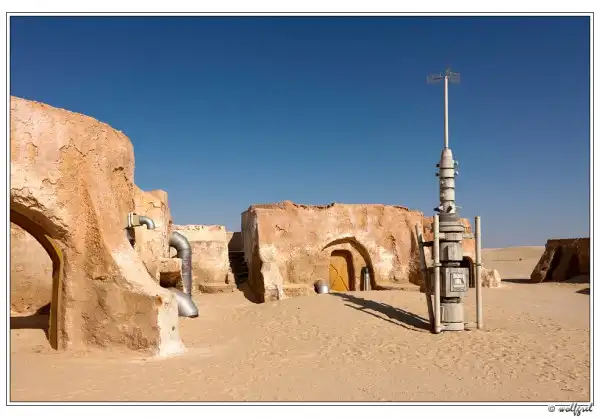 Татуин – небольшой городок на юге Туниса, административный центр губернаторства Татауин. Именно здесь режиссер Джордж Лукас снимал некоторые эпизоды знаменитой истории. Правда съемки первого фильма “Звездные войны: Эпизод IV – Новая надежда” проходили не там, а в окрестностях берберского поселения Матмата, где помимо пейзажей в картине засветились интерьеры отеля “Sidi Driss”.