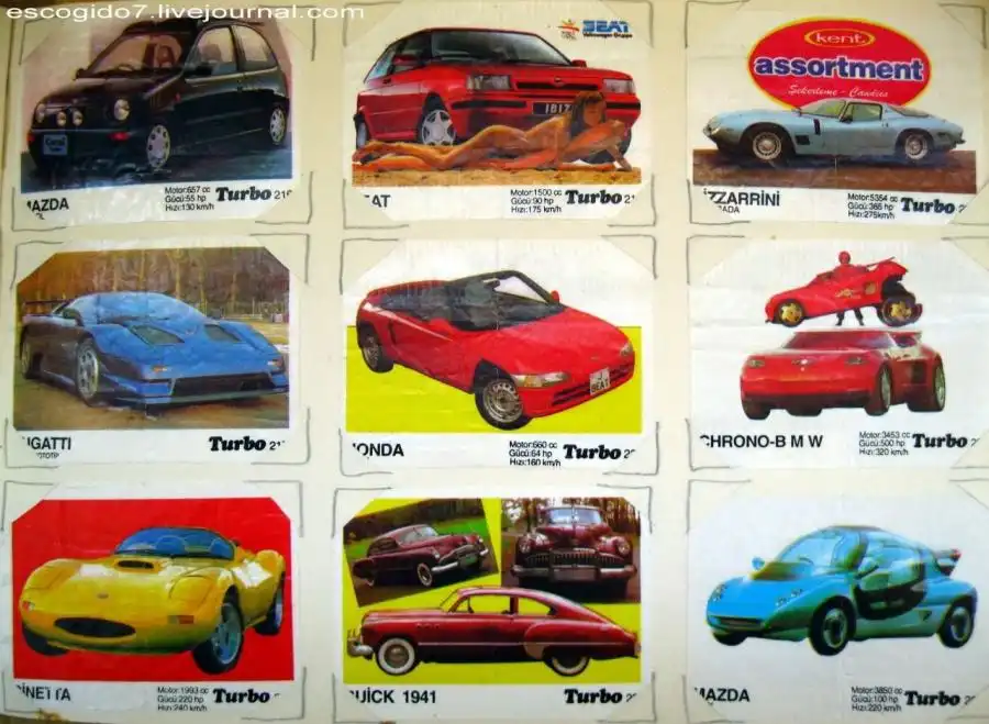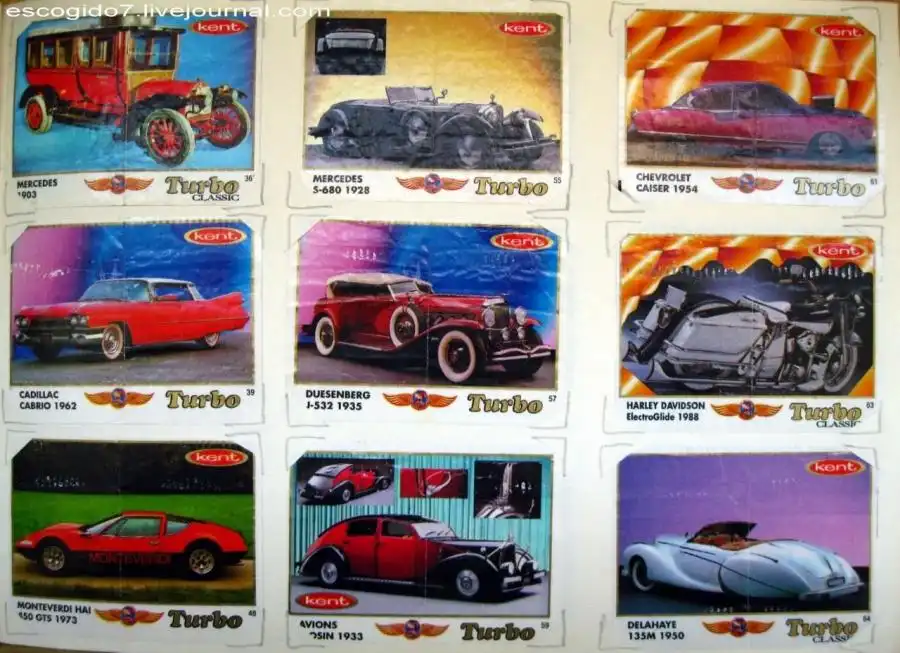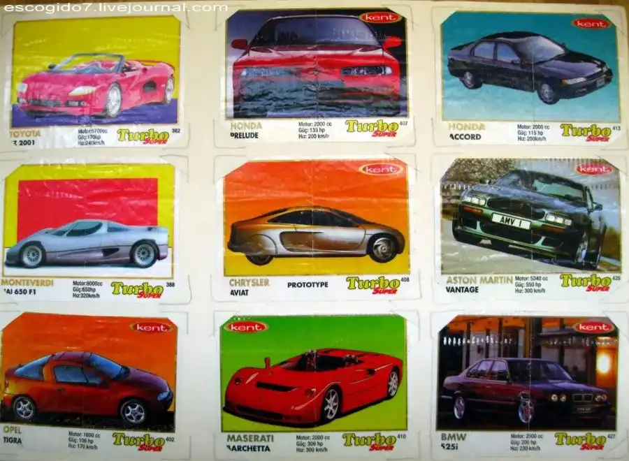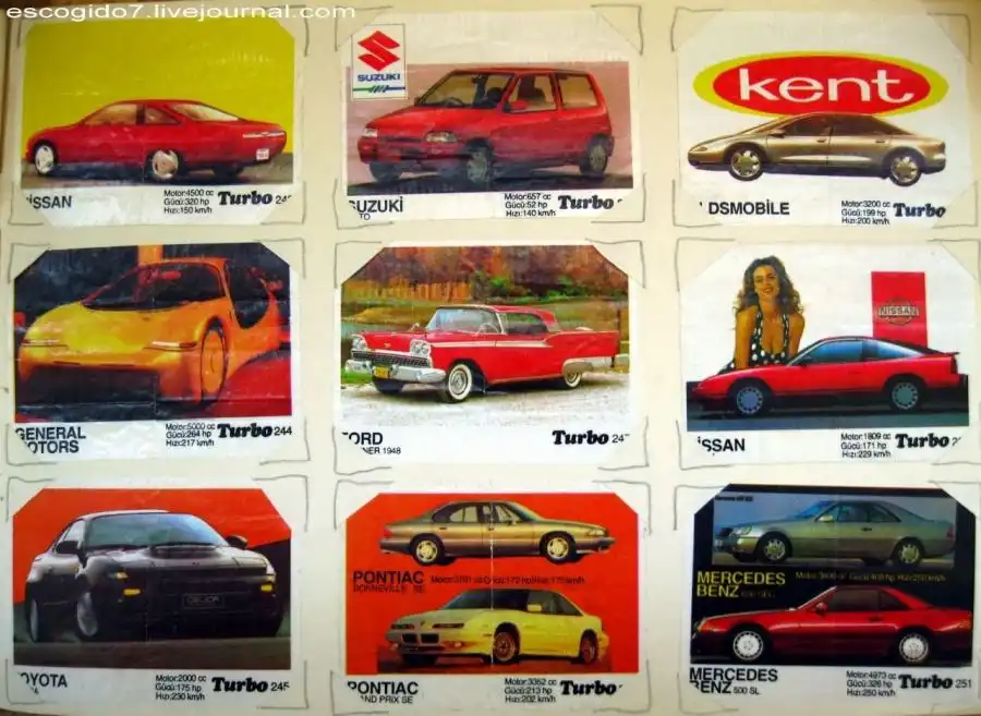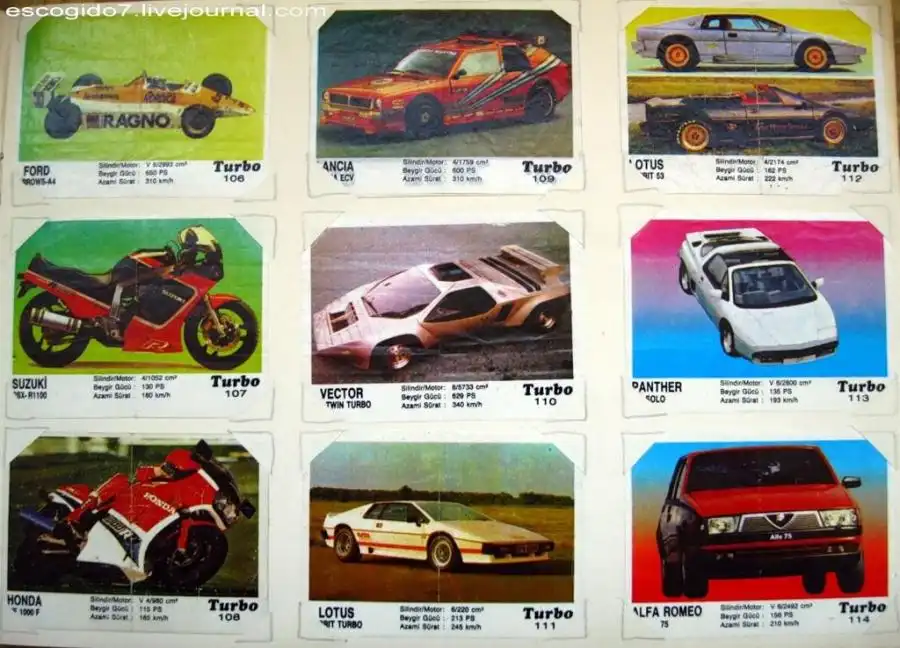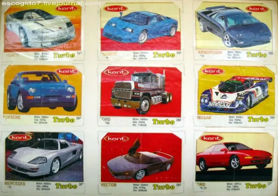 Я же собирал картинки из "турбо" кропотливо, номерок к номерку. Сперва была внушительная стопка, но потом я решил, что нужно их как-то оформить и стал вкладывать их в альбом, вырезая под них уголки. Так я насобирал несколько сотен вкладышей.