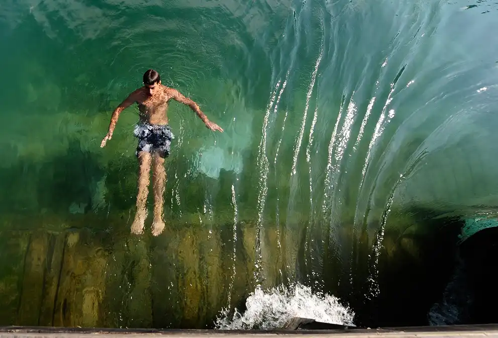 Посетители бассейна с искусственными волнами в Акируно, недалеко от Токио.