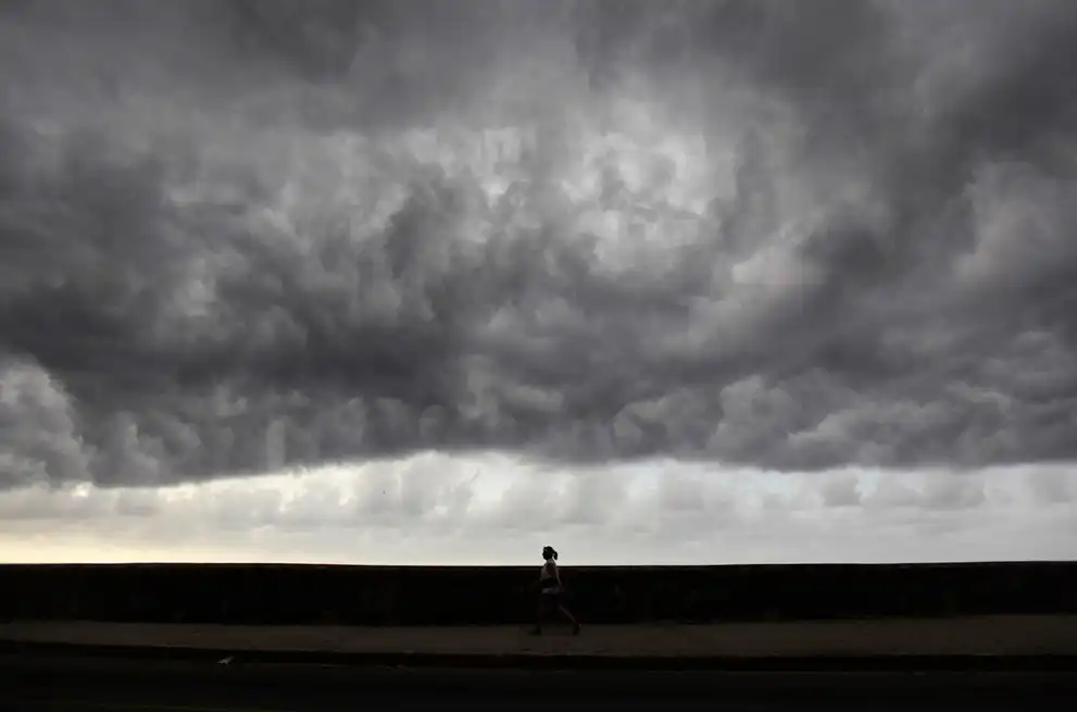 Девушка на пробежке под грозовыми тучами над Гаваной, на знаменитой набережной Малекон.