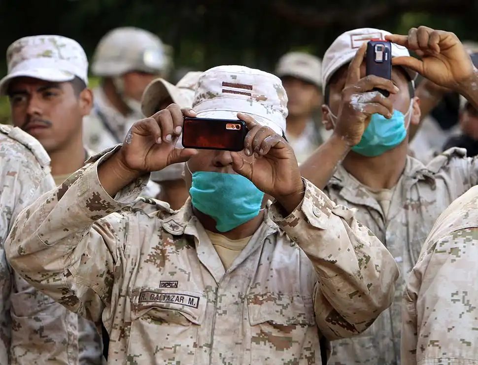 Партия марихуаны была готова к отправке в пограничный с Тихуаной американский город Сан-Диего. Дельцы рассчитывали получить за свой товар $340 миллионов. На фото: военные делают снимки на мобильные телефоны