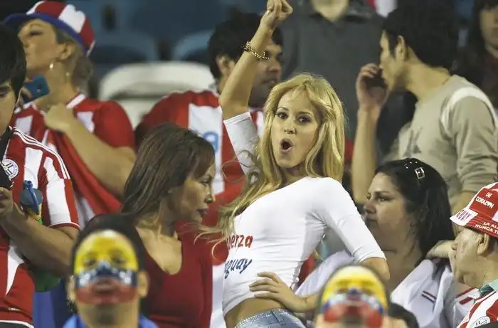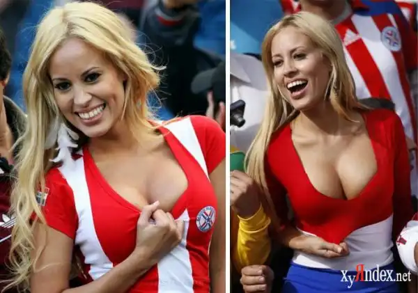 А до последнего времени самой сексуальной болельщицей Парагвая считалась Лариса Рикельме. Она тоже присутствовала на матче, но смотрела игру не со всеми остальными, а из ложи для прессы. Зазналась.