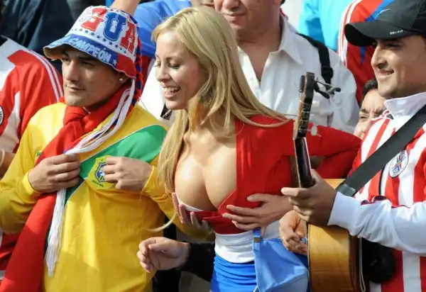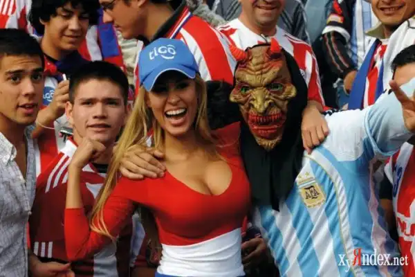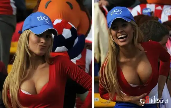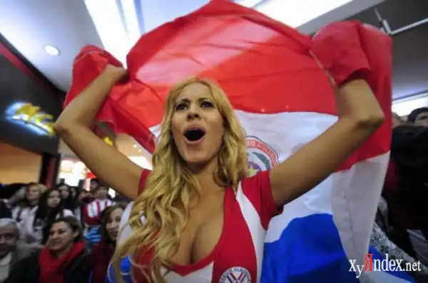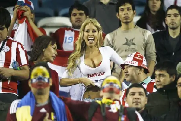 В Кордове, Аргентина, прошел матч между сборными Парагвая и Бразилии в рамках Кубка Америки по футболу. Но внимание фотографов привлекли не игроки, а сексуальная блондинка, которую уже признали самой сексуальной болельщицей Парагвая.
