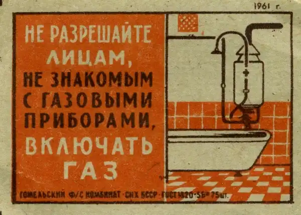 Серия сообщений Службы газа о правилах пользования газовой плитой и колонкой, датированных 1961 годом.