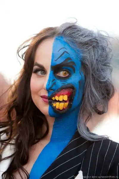Меган Мари (Meagan Marie) – королева косплея – японского модного течения, заставляющего наряжаться в точности, как герои фильмов и анимэ. Она не просто одевает готовые костюмы. Она ходит в них везде, чтобы наложить нужный макияж иногда ей требуется до шести часов, как, например, в случае ее чрезвычайно креативного образа на основе комиксов «Женщина с двумя лицами».