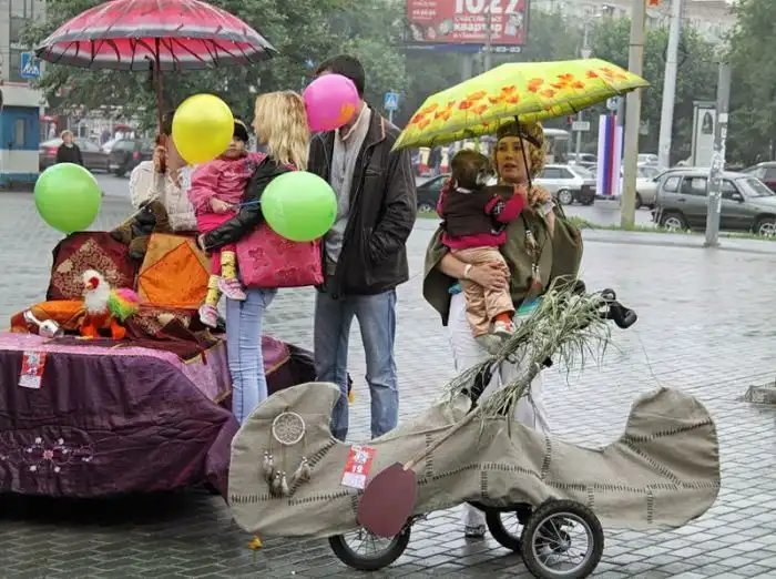 Несмотря на хмурую погоду и мелкий дождь, ведущие радио «Шансон» шутками развлекали публику, а на площади играла музыка и царило веселое оживление. Настроение создавали конкурсы от ведущих, акробатические номера, шоу мыльных пузырей, выступления детского вокального ансамбля и танцевального коллектива. Горожане плотным кольцом обступили сцену и самые интересные коляски, а их создатели с гордостью демонстрировали свои произведения.