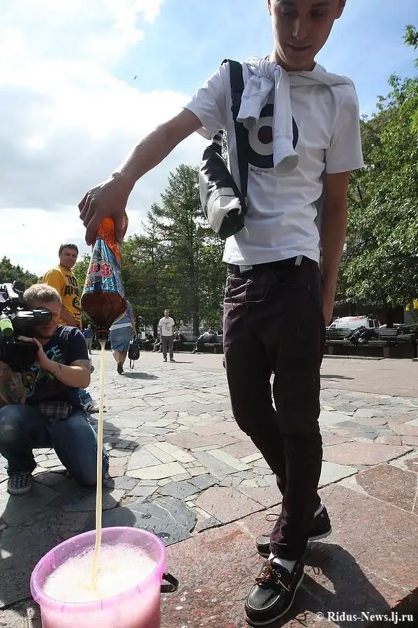 Суть мероприятия заключалась в том, что девушки предлагали случайным молодым людям выливать пенный напиток в специальные ведра, а в награду за своеобразное пожертвование поклонницы президента снимали с себя одежду. За 3 литра пива, оказавшегося в ведре, девушки готовы были лишиться шорт, а за 6 литров — майки.