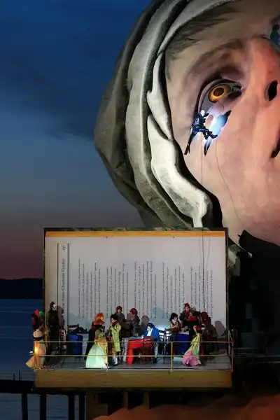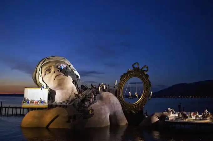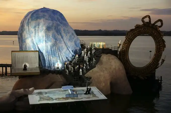 На Констанцском озере в Австрии установлена один из самых внушительных оперных сцен, которые когда-либо создавались. Фестиваль Брегенца создает такие сцены с 1946 для своей торговой марки "Опера". Оперная сцена установлена на неподвижном ядре, поставленном на якорь. Плавающая сцена должна быть на две трети больше, чем обычная, таким образом, она не сливается с естественной средой. Все декорации - водонепроницаемы.