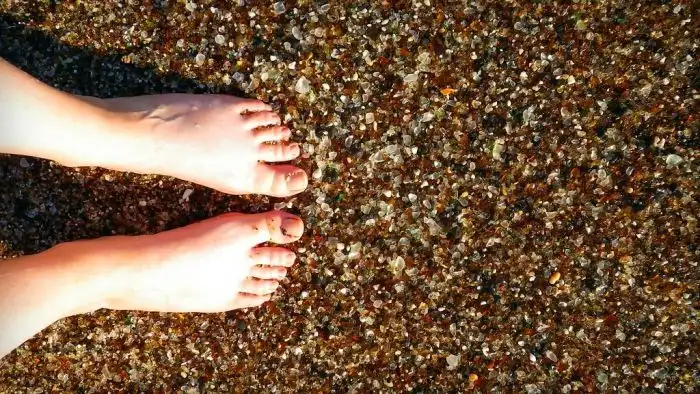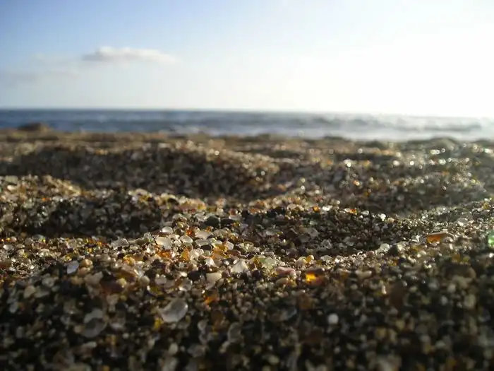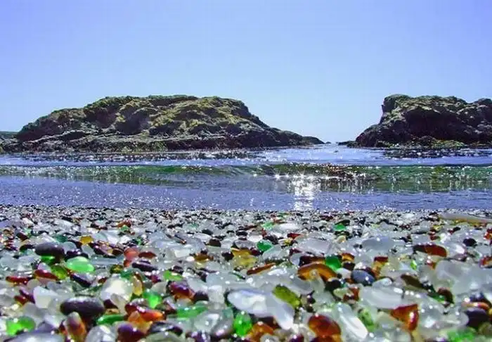 Этот уникальный пляж находится в Калифорнии, США, а его главной особенностью является огромное количество стекла и пластика,вместо камней и песка. В первой половине 20-го столетия тут был свалка, которую власти штата закрыли в начале 60х годов.С тех пор горы битого стекла и пластика были предоставлены силам природы,которые превратили мусор в красивое разноцветное побережье.
