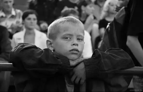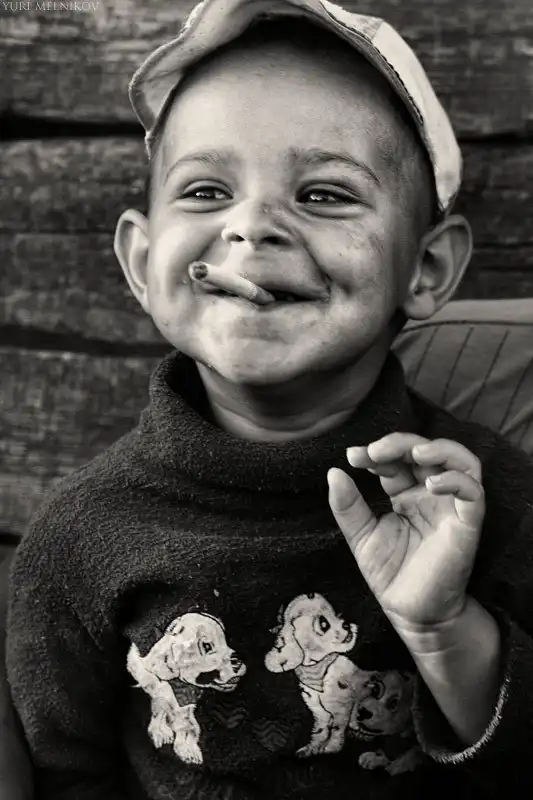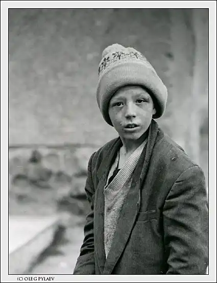 Смотрите, смотрите еще внимательнее... И вы, наверняка, согласитесь со мной, что самым примечательным на этом фото являются глаза мальчика. Несмотря на трагизм его положения, в них нет печали. Более того, они даже смеются!!! Он, несомненно, не понимает, что жизнь его обречена. Не понимает, что никогда не сядет за школьную парту, не станет ни летчиком, ни танкистом, ни моряком. Он не понимает, что так и останется грязным и необразованным волчонком, живущим в стае себе подобных, пока не будет либо убит, либо умрет от какой-нибудь болезни, холода или голода. Вот он - раб для будущих хозяев России, которым она будет, в конце концов, сдана! И в этом самая главная трагедия его поколения.
