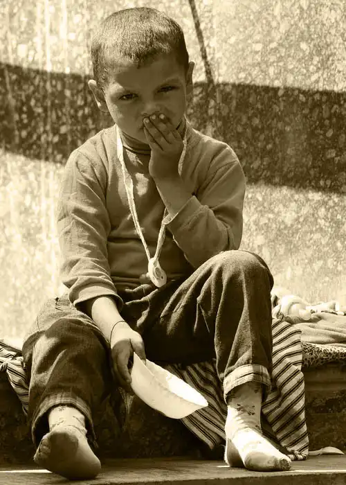 Посмотрите на фотографию мальчишки, приведенную в этой страшной публикации. Всмотритесь в его явно снятую с чужого плеча одежду, в его лицо и руки, несомненно давно не видевшие ни мыла, ни воды. Обратите также внимание на его правую щеку, на которой - то ли грязь, то ли шрам, полученный либо в битве при отстаивании своего права на существование, либо оставшийся от крысиного укуса где-нибудь в канализации, которая являлась его ночлегом.