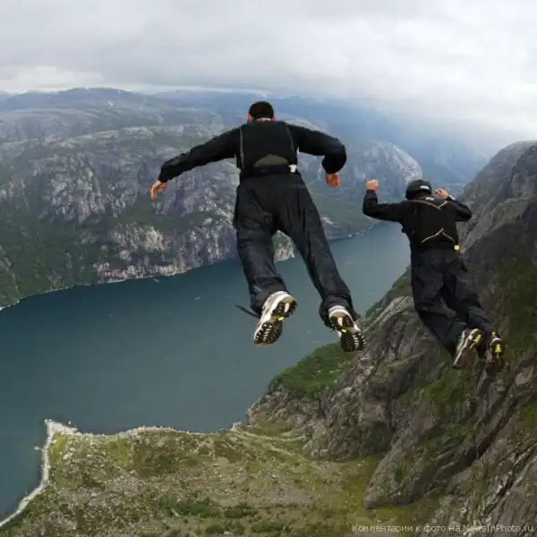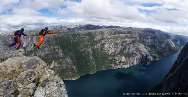 Бэйсджамперы прыгают с плато Кьёраг, Норвегия