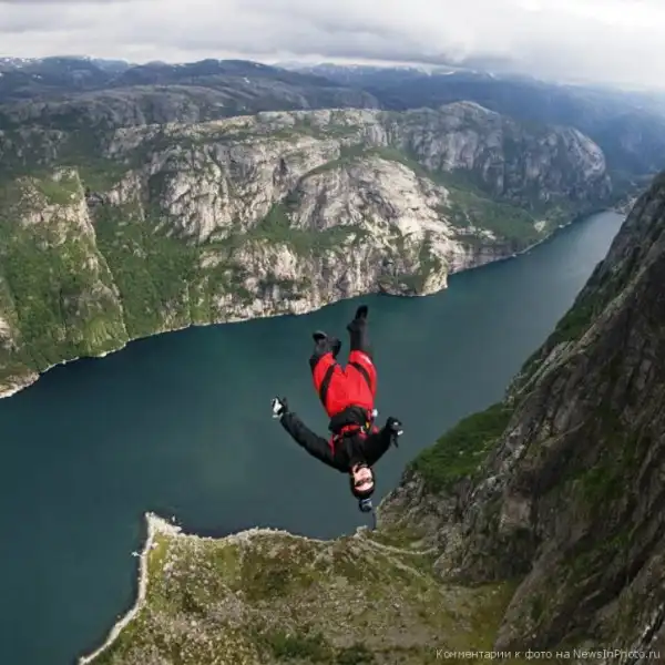 На этих фотографиях запечатлены новые прыжки бэйсджамперов британской команды ProBASE с плато Кьёраг в Норвегии. От обычного парашютного спорта прыжки с «базы» отличаются большей долей экстрима, ведь расстояние до земли гораздо меньше и за это время нужно успеть насладиться секундами свободного полета и к тому же вовремя раскрыть парашют.