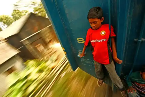 Ежедневно тысячи "зайцев" едут домой на крышах вагонов или прячутся между сцепками.