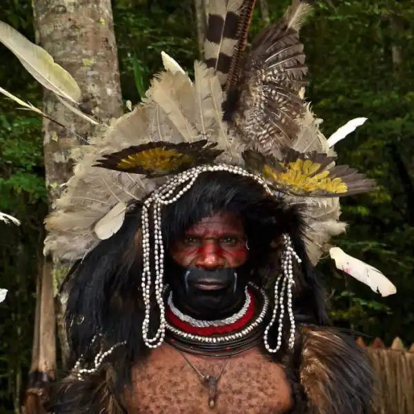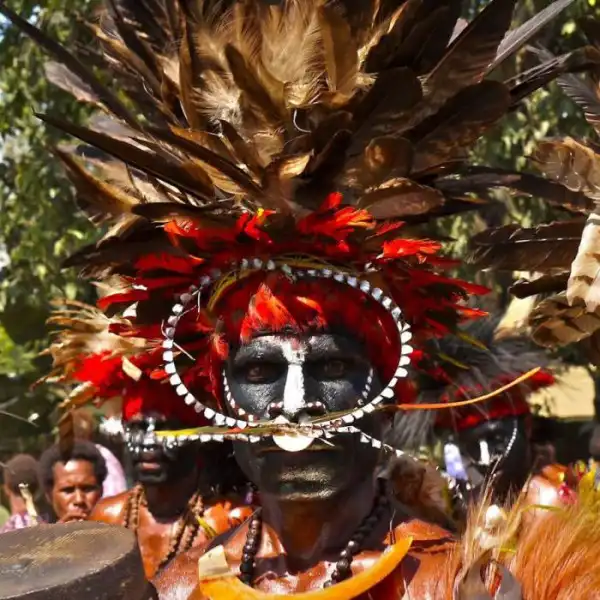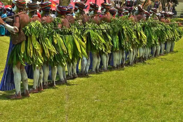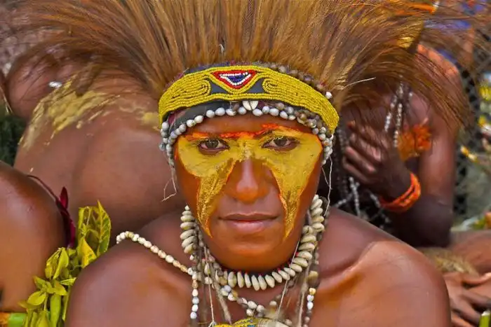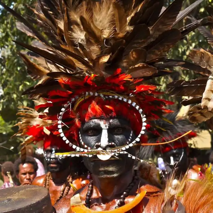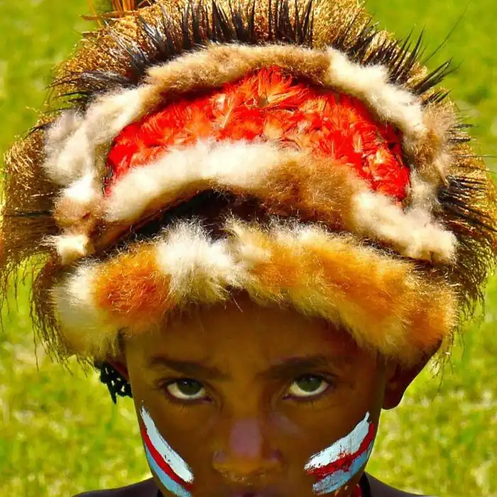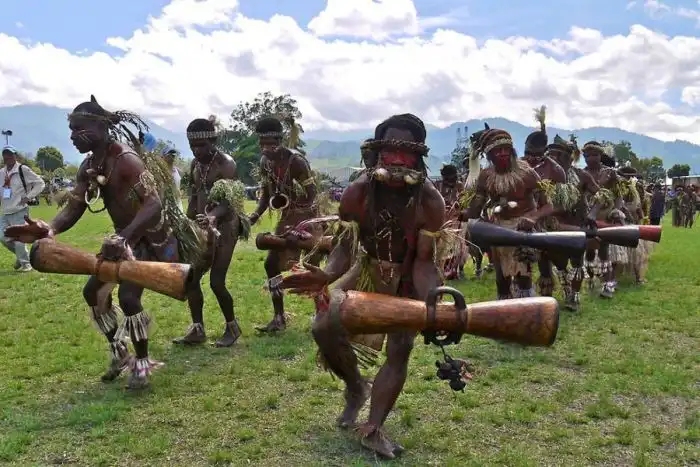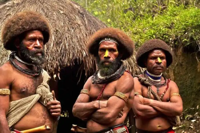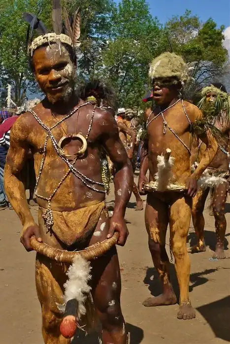 Предлагаю посмотреть фотографии самых настоящих папуасов.Папуасы -древнейший народ населяющий острова Новая Гвинея.Естественно они занимаются охотой ,а так же выращивают,кокосы,бананы.
