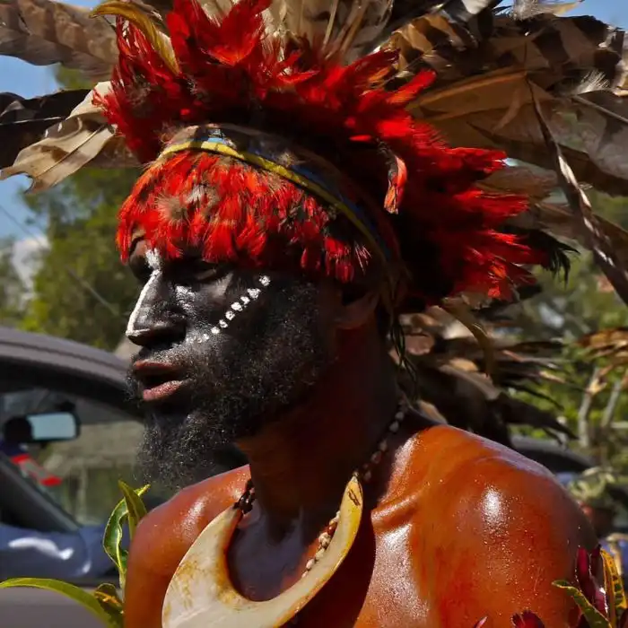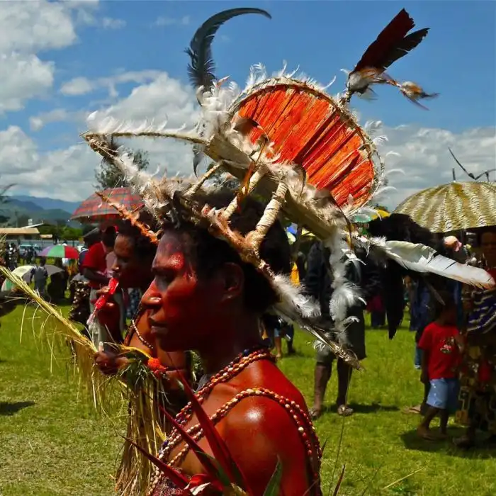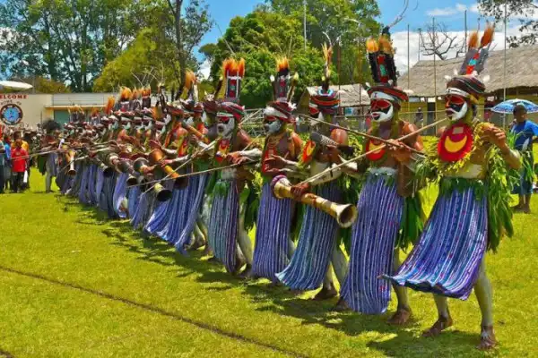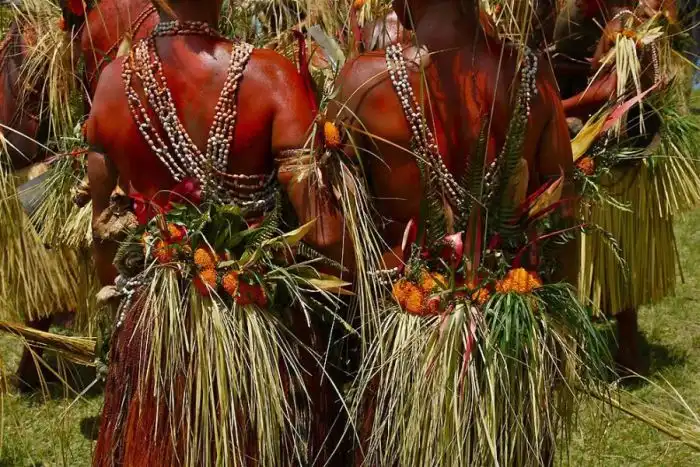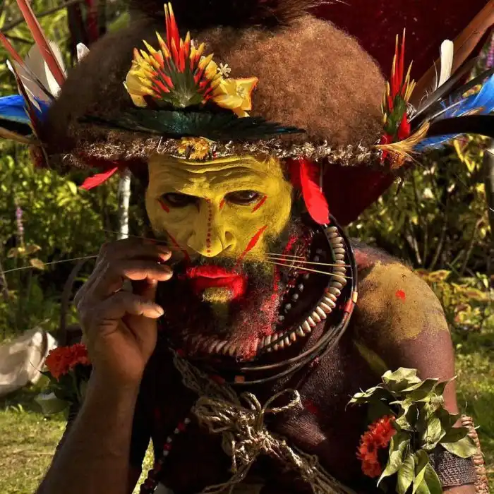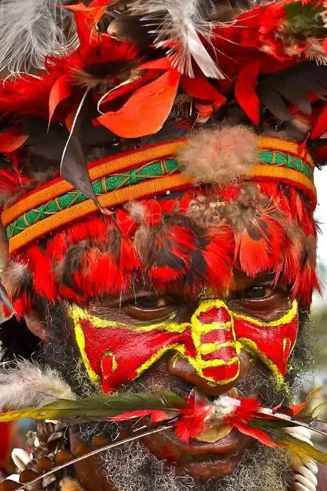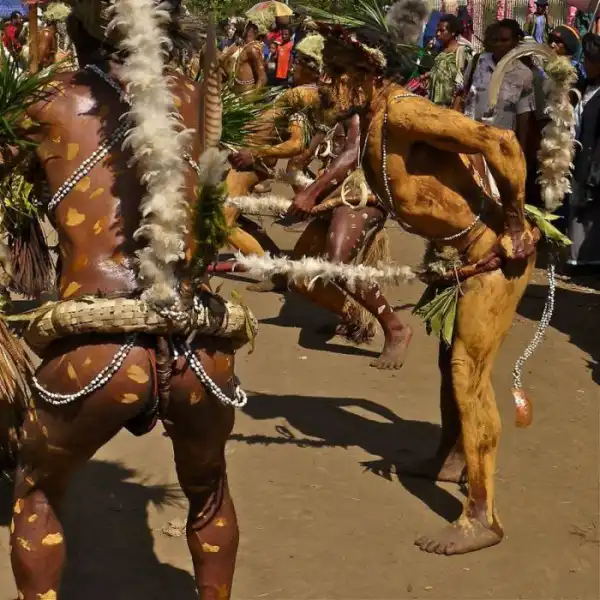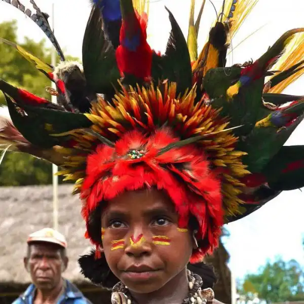 Предлагаю посмотреть фотографии самых настоящих папуасов.Папуасы -древнейший народ населяющий острова Новая Гвинея.Естественно они занимаются охотой ,а так же выращивают,кокосы,бананы.
