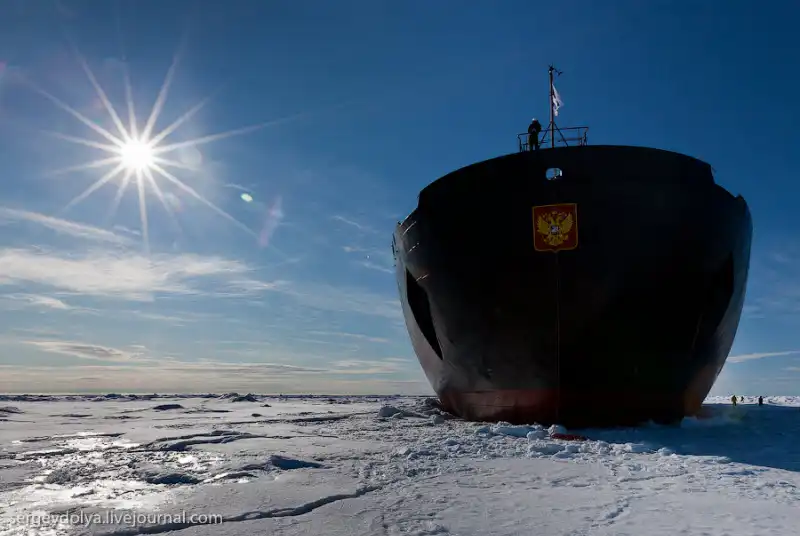 Уж не знаю почему, но ледокол сделал небольшую остановку... и поскольку за бортом была отличная погода народ решил немного погулять и сделать много красивых снимков.