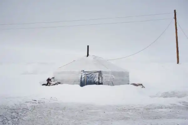 3. Одинокая заброшенная юрта. Пастухи вынуждены покинуть свое жилище после сильной метели.