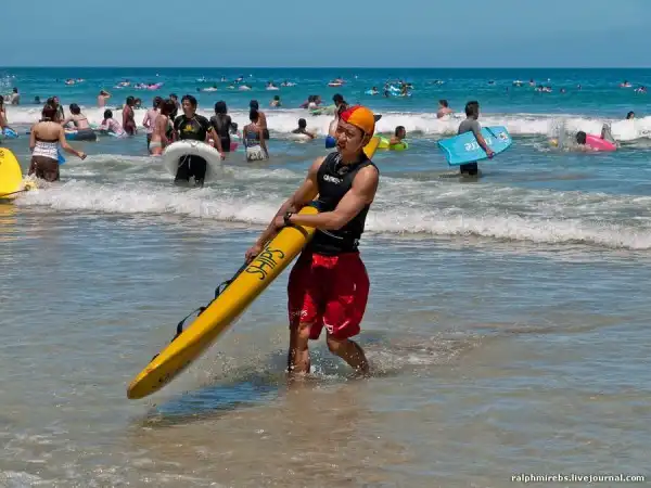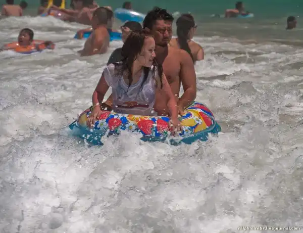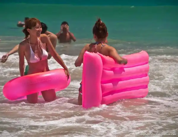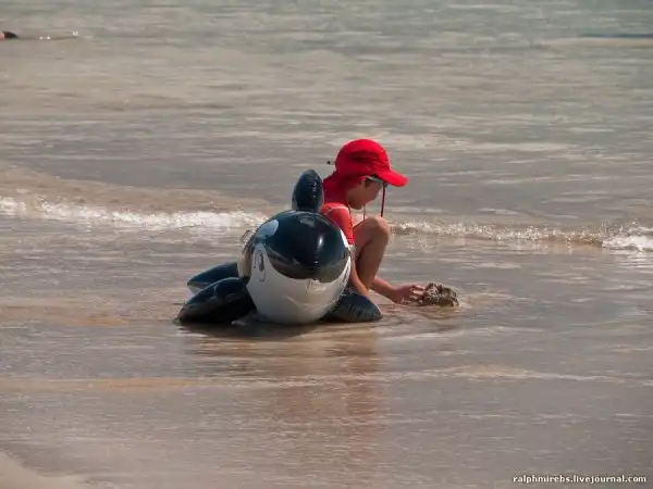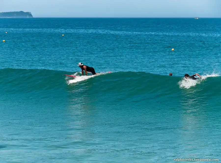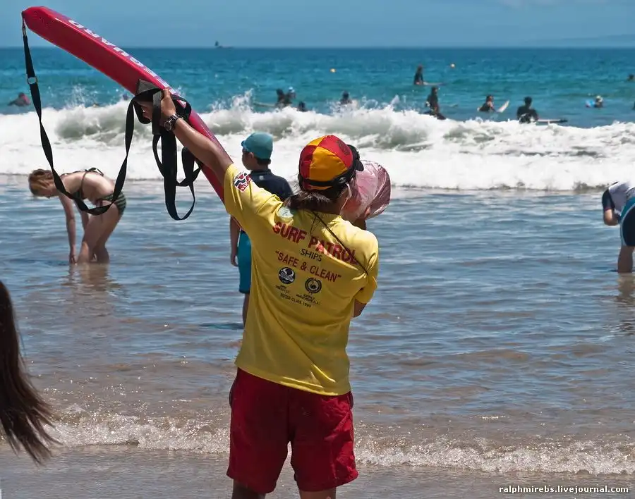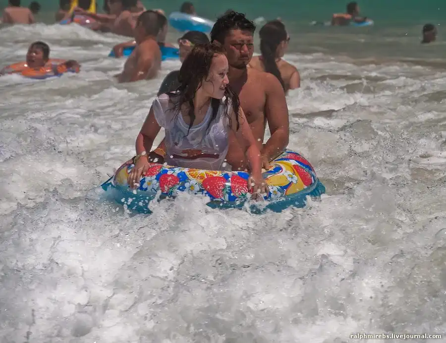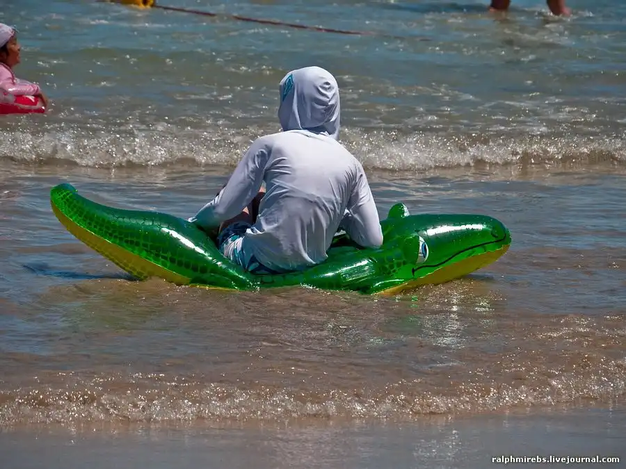 Во-вторых, львиная доля купающихся имеет с собой какое-нить надувное средство, начиная от круга и до доски для сёрфинга. Но это не потом, что местные не умеют плавать, дело в том, что самое интересное развлечение - ловить волны. Люди просто плавают на поверхности, ожидая волны и если отплывают от берега, так только ради поиска другого места для ожидания.