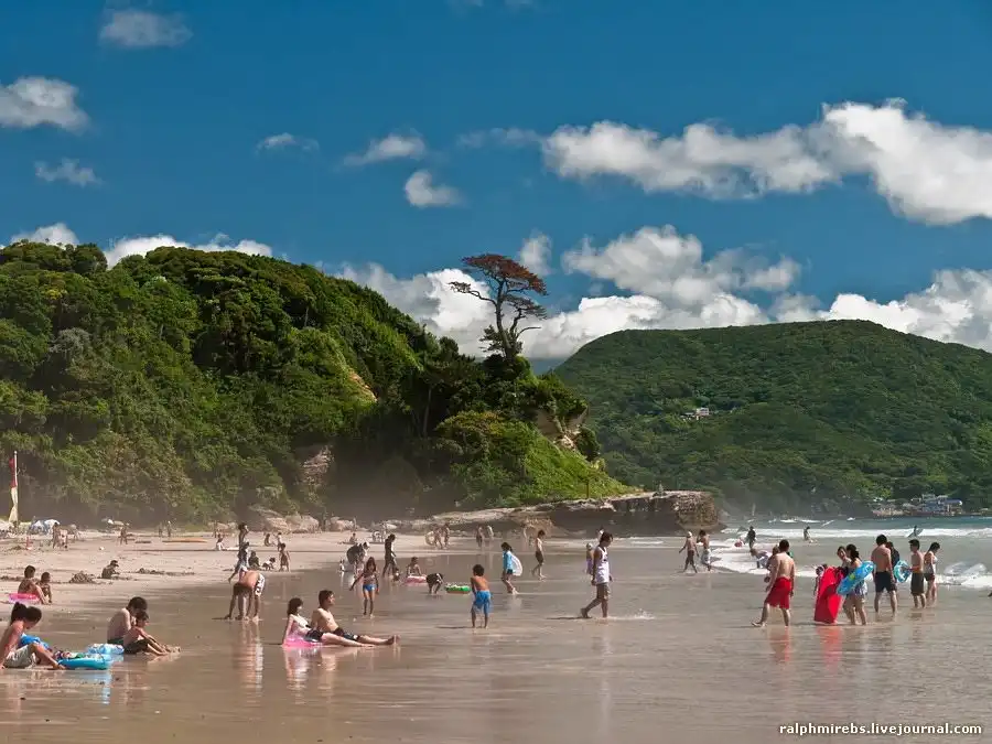 Довелось на днях мне побывать на одном из пляжей японского тихоокеанского побережья с купально-фотографической миссией. Не знаю как отдыхают туристы на Чёрном море или на пляжах Средиземноморья, но, говоря о японских пляжах, сразу бросаются в глаза несколько вещей.