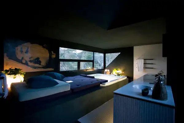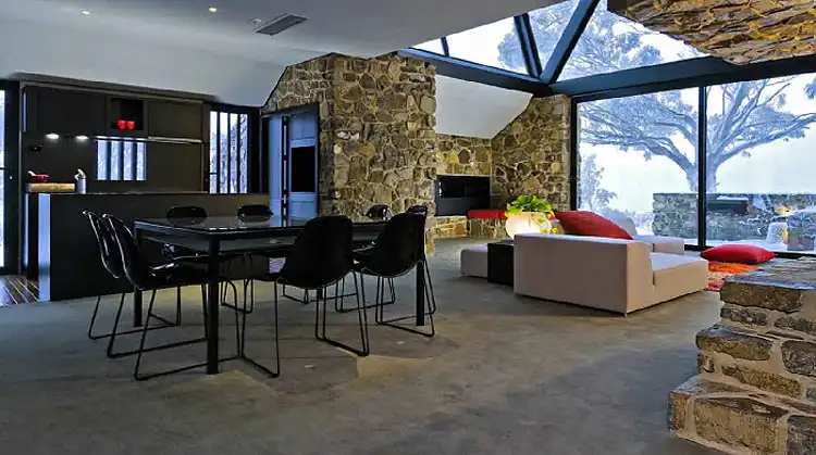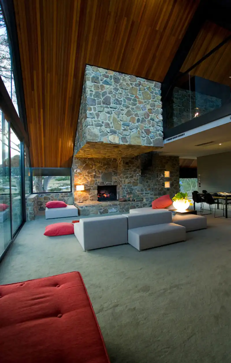 Особенностью дома являются окна и камин. Практически все стены дома - это гигантские окна, большая часть которых защищена внешними вертикальными жалюзями, регулирующими освещенность. Из любой комнаты, из любого коридора можно увидеть окружающую природу. Камин - это центр дома, его очаг. На его постройку ушло 20 тонн камня, и он является ключевым элементом всей конструкции. Металл используется не только в несущих балках дома, им покрыта и вся крыша, причем он удачно замаскирован под дерево. Архитектор в 2009 году на ежегодной премии Ассоциации Жилищной Индустрии (HIA) даже получил специальный приз «За самое инновационное использование стали». Двухярусный дом, с двумя парковками, со всем великолепным внутренним интерьером, можно купить всего за $1.55 миллиона автралийских долларов.