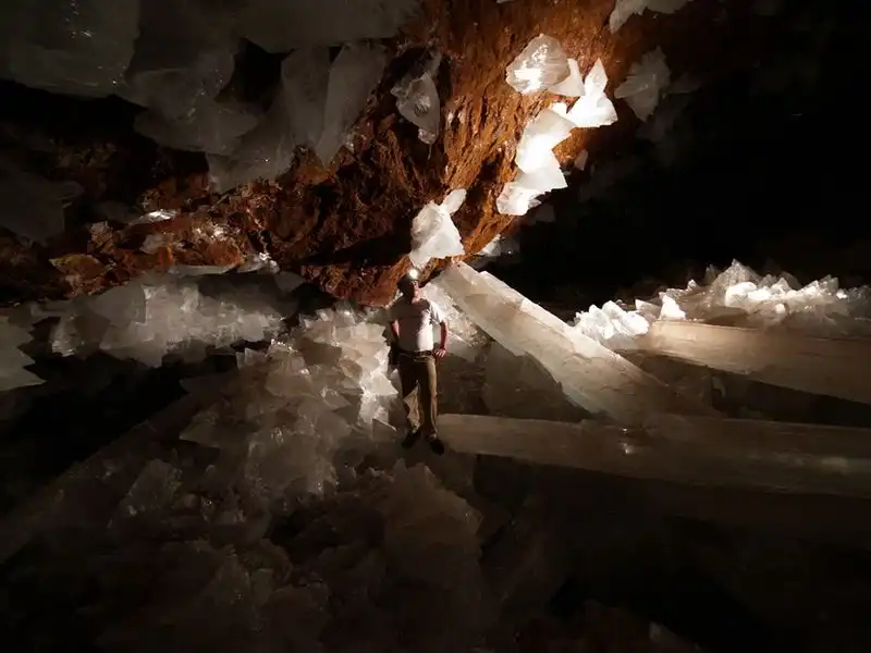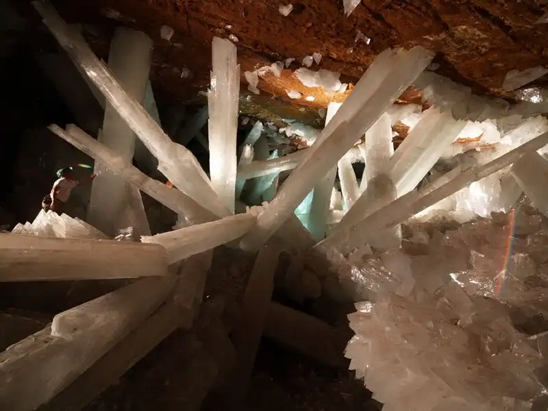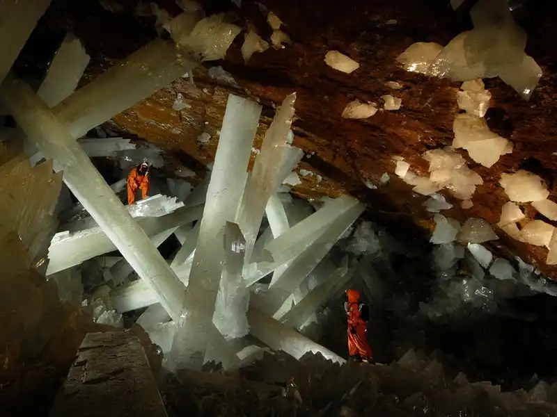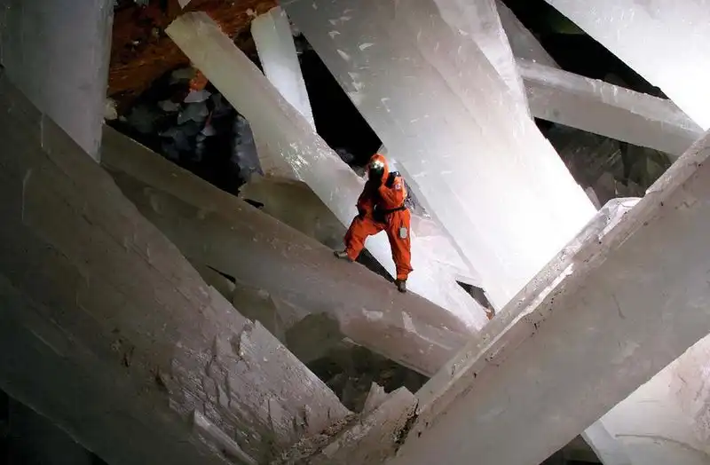 1. Пещера кристаллов (Cueva de los Cristales) расположена в шахтовом комплексе Naica, в мексиканской пустыне штата Чиахуа на глубине 300 метров.