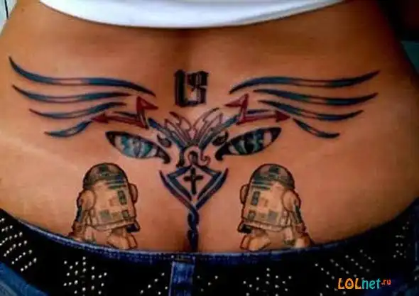 На какие только глупые поступки способны люди... Подборка фотографий с глупыми и нелепыми татуировками на нижней части спины...