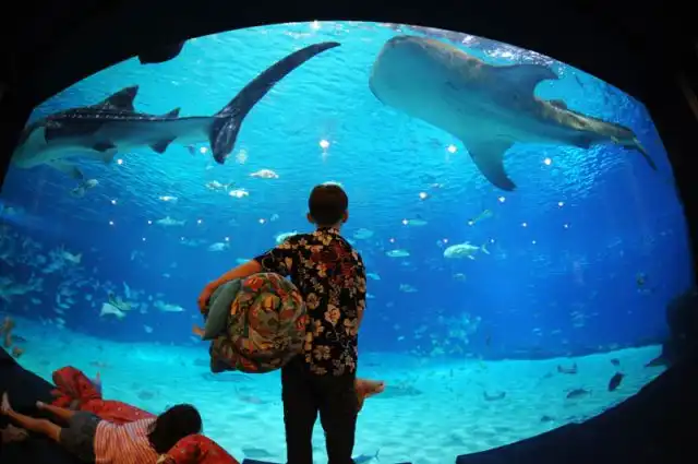 Аквариум содержит 8,5 миллионов галонов воды и 120 000 существ, более чем 500 видов из 60-и мест обитания.