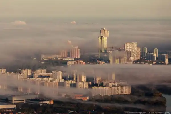 Потрясающие фотографии Дмитрия Чистопрудова, который сфотографировал потрясающий туманный рассвет над Москвой.