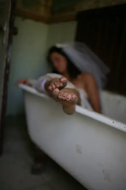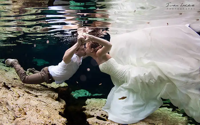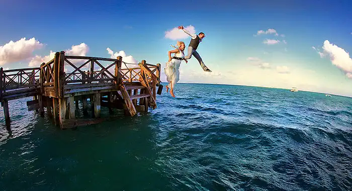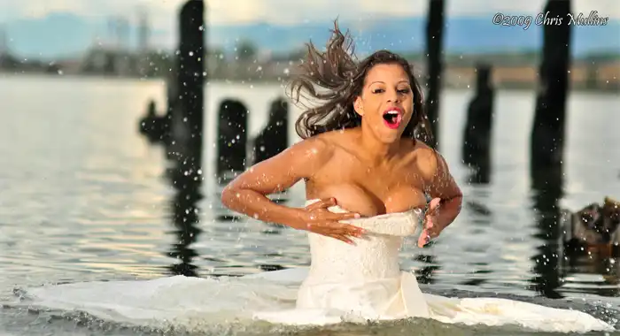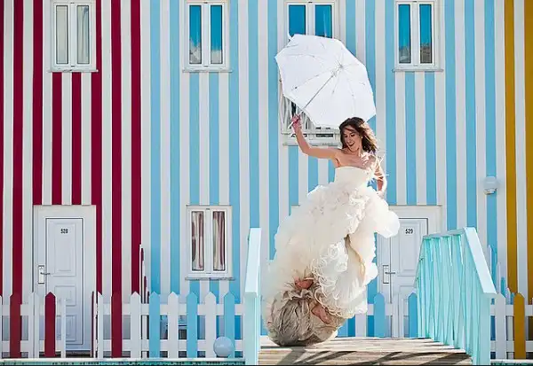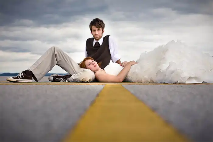 Чаще всего дело сводится к тому, чтобы невесту в кадре усадить/уложить в каком-нибудь не очень чистом месте или окунуть в воду. Но встречаются и более экстремальные варианты.