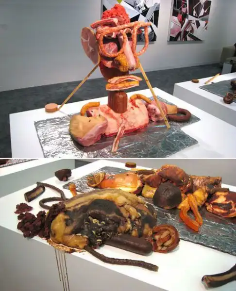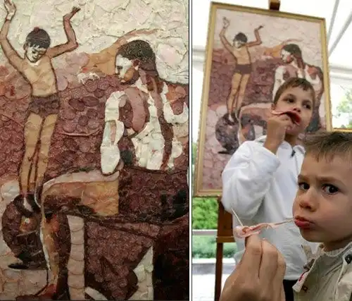 Необычная выставка картин из колбасных изделий. А первая в мире выставка картин из колбасных и мясных изделий, на которой представлены копии "Джоконды", "Девочки на шаре" и "Подсолнухов", уже занесенная в Книгу рекордов Гиннеса, проходила в Ростове-на-Дону.