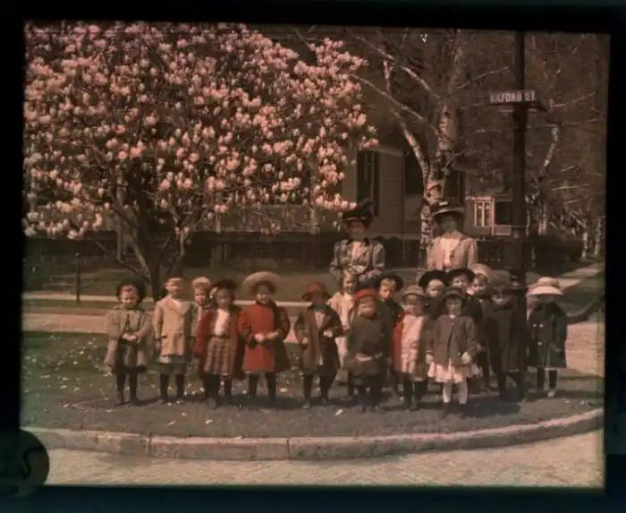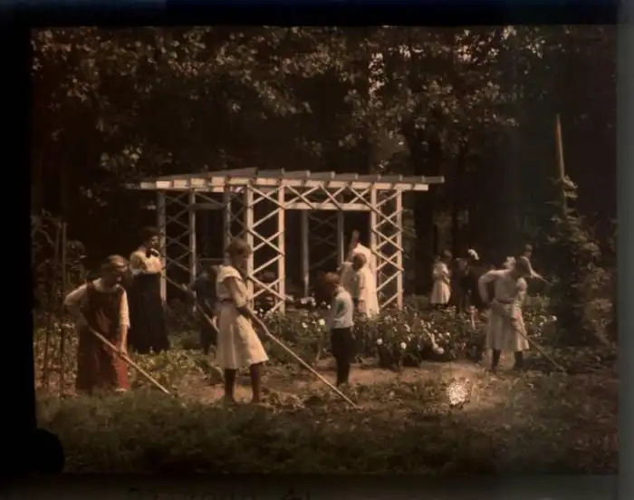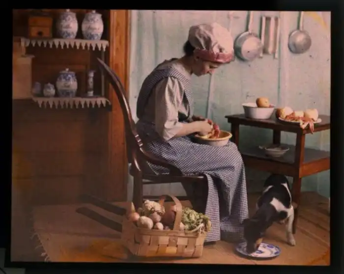 Цветные фотографии, сделанные братьями Луи и Огюстом Люмьер. Несмотря на колоссальный успех их изобретения - кинематографа, они не увидели в этом деле никаких перспектив и занялись цветной фотографией. Они запатентовали технологию изготовления цветных снимков, назвав ее "Автохром Люмьер".