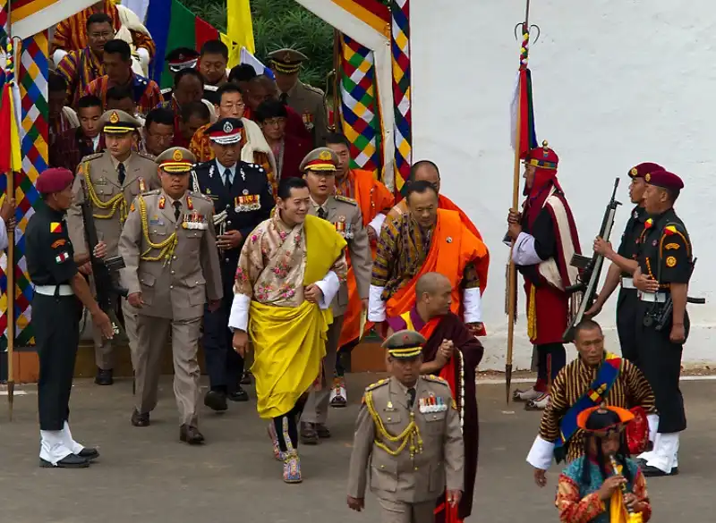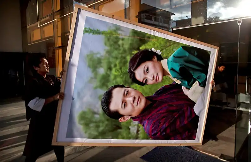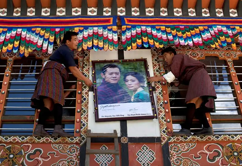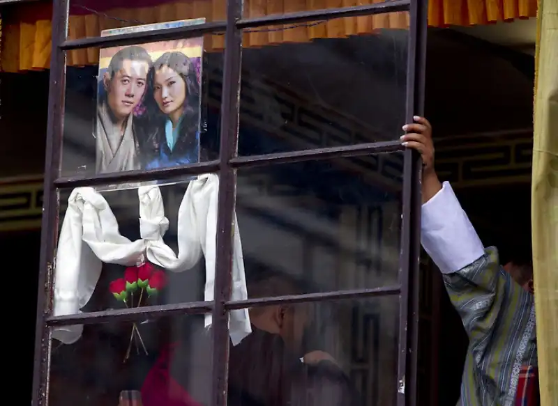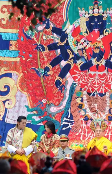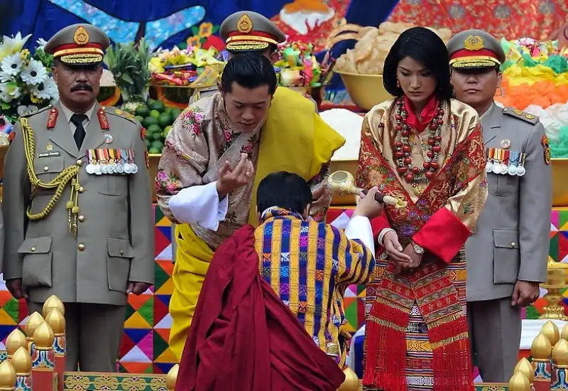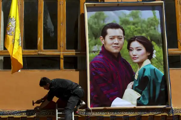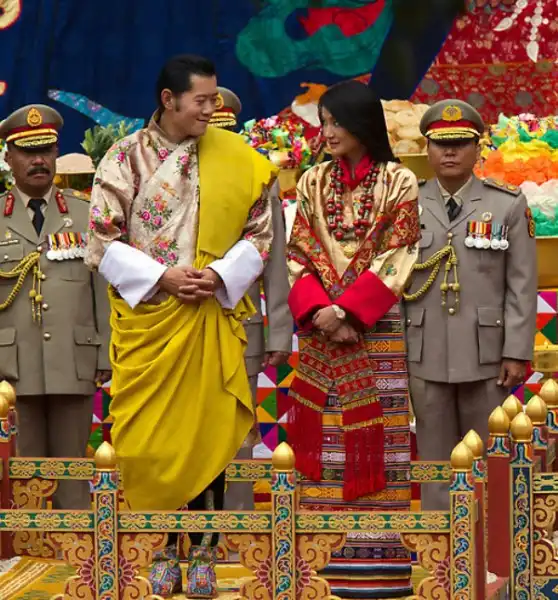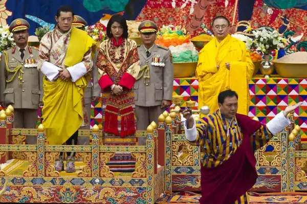 Любимый народом правитель Бутана, крошечного гималайского государства, женился в четверг на невесте-простолюдинке. Свадебная церемония была проведена согласно древним буддийским традициям в самой святой для бутанцев монастырской крепости страны. Король Джигме Кхесар Намгьял Вангчук, с короной на голове, спустился вниз со своего золотого трона, находящегося перед огромной статуей Будды, чтобы надеть своей невесте, Джецун Пема, корону из шелковой парчи. Монахи прославляли девушку в песнях, когда она заняла свое место рядом с ним как новая королева страны. Свадьба очаровала народ, который нетерпеливо ждал, когда их 31-летний король-холостяк женится. Дети сочиняли стихи, стюардессы разучивали праздничные танцы, а плакаты с изображением пары были развешены почти повсеместно.