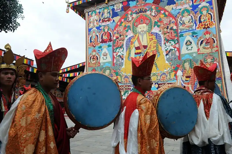Свадьбу вместе с молодоженами празднует в буквальном смысле все 700-тысячное население Бутана: трехдневные торжества во всех городах страны сопровождаются танцами, карнавальными шествиями и застольями. Всего же посетить церемонию собираются 1,5 тысячи официальных гостей со всего мира.