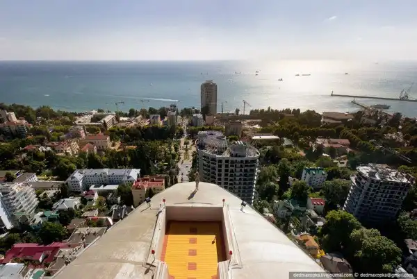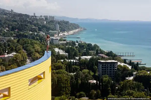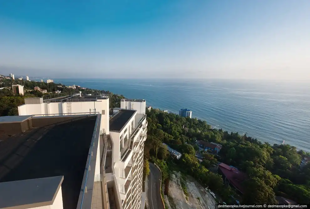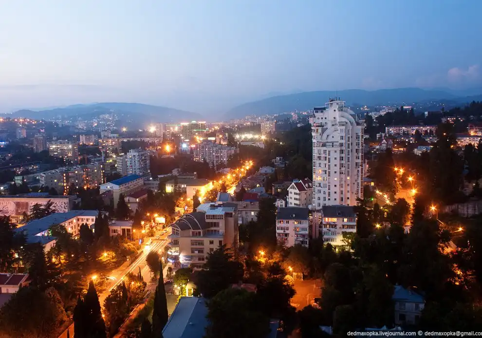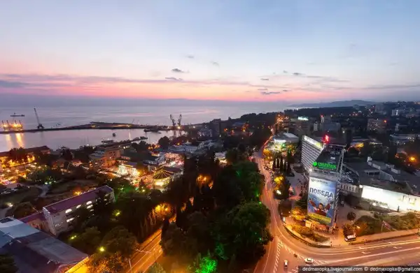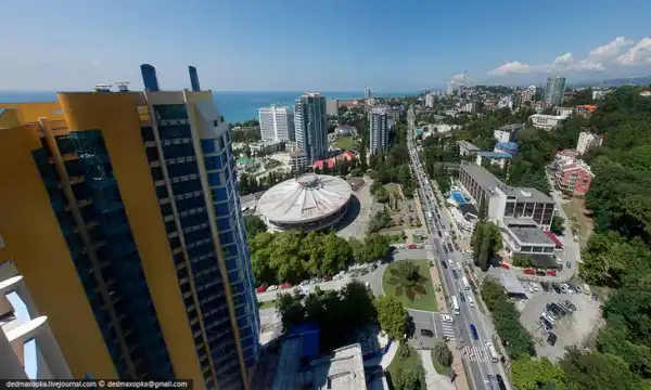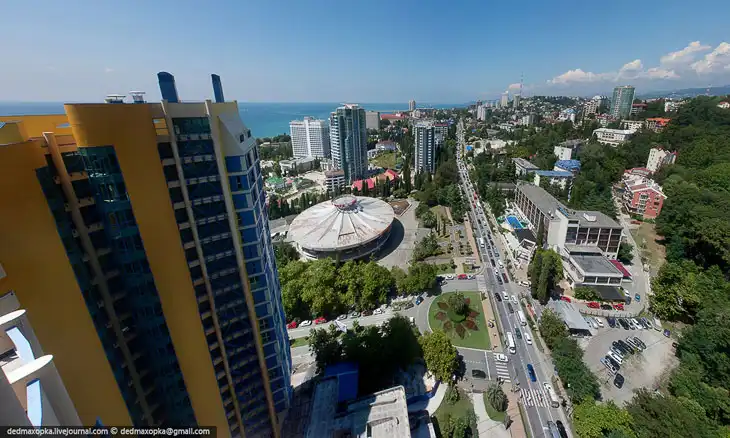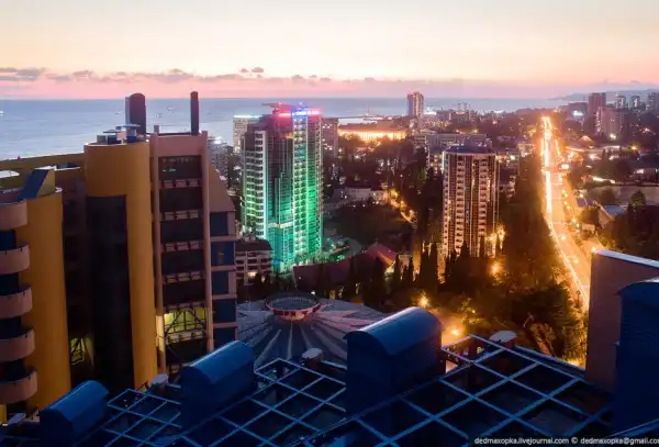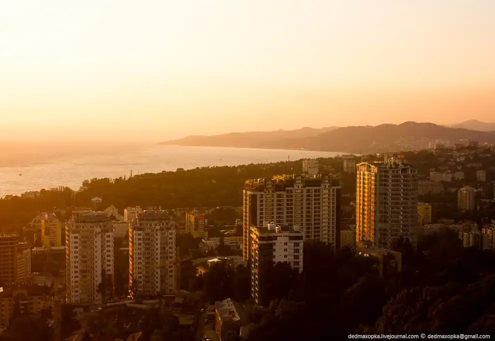Удивительно, но в Сочи очень мало храмов и нет хороших кинотеатров, очень много полицейских и дпсников. Когда стоишь на крыше и снимаешь, постоянно слышно, как дпсники на своих машинах со включенными сиренами объезжают пробки. Когда идёт какой-нибудь правительственный кортеж, весь город стоит, образуются километровые пробки.