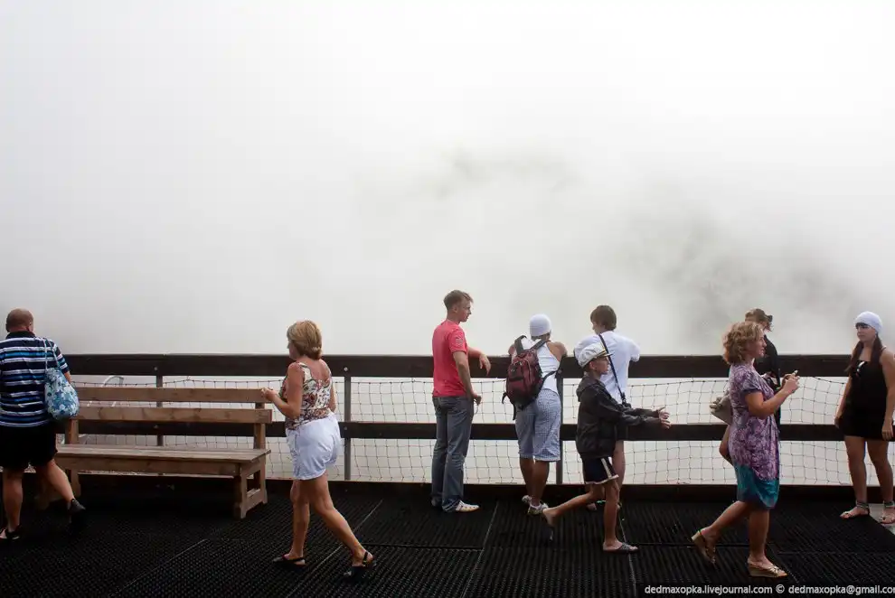 Поднялся на гору! Думал, что сейчас выйду за ограждения и пойду гулять по горам. Но меня сразу остановили и сказали, что нельзя: рядом граница и пограничники меня сразу задержат. Я был полностью разочарован смотровыми. Вокруг еще шумела строительная техника. Обзор ограничен. Зря поднимался.
