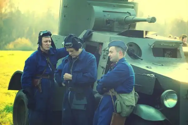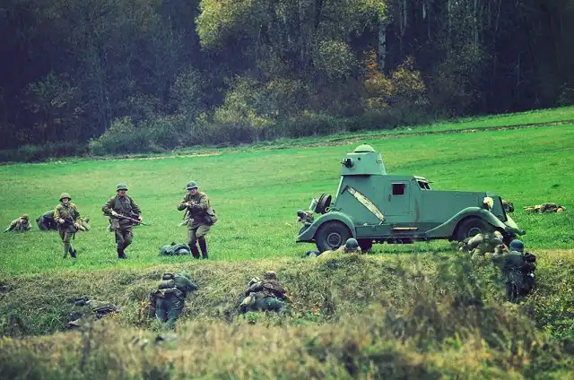 Вопреки расхожим опасениям, мосфильмовская оружейка, хоть и с Гулькин нос, но привезла ОСХП. Для дополнительного создания "фонограммы боя" были так же пригнаны срочники с калашами, коих раскидали подальше от глаз зрителей. Не могу не отметить питерских камрадов, которые на эвакуаторах привезли две БАшки, принявших активное участие в бою - давненько у РККА на Бородино не было бронетехники...